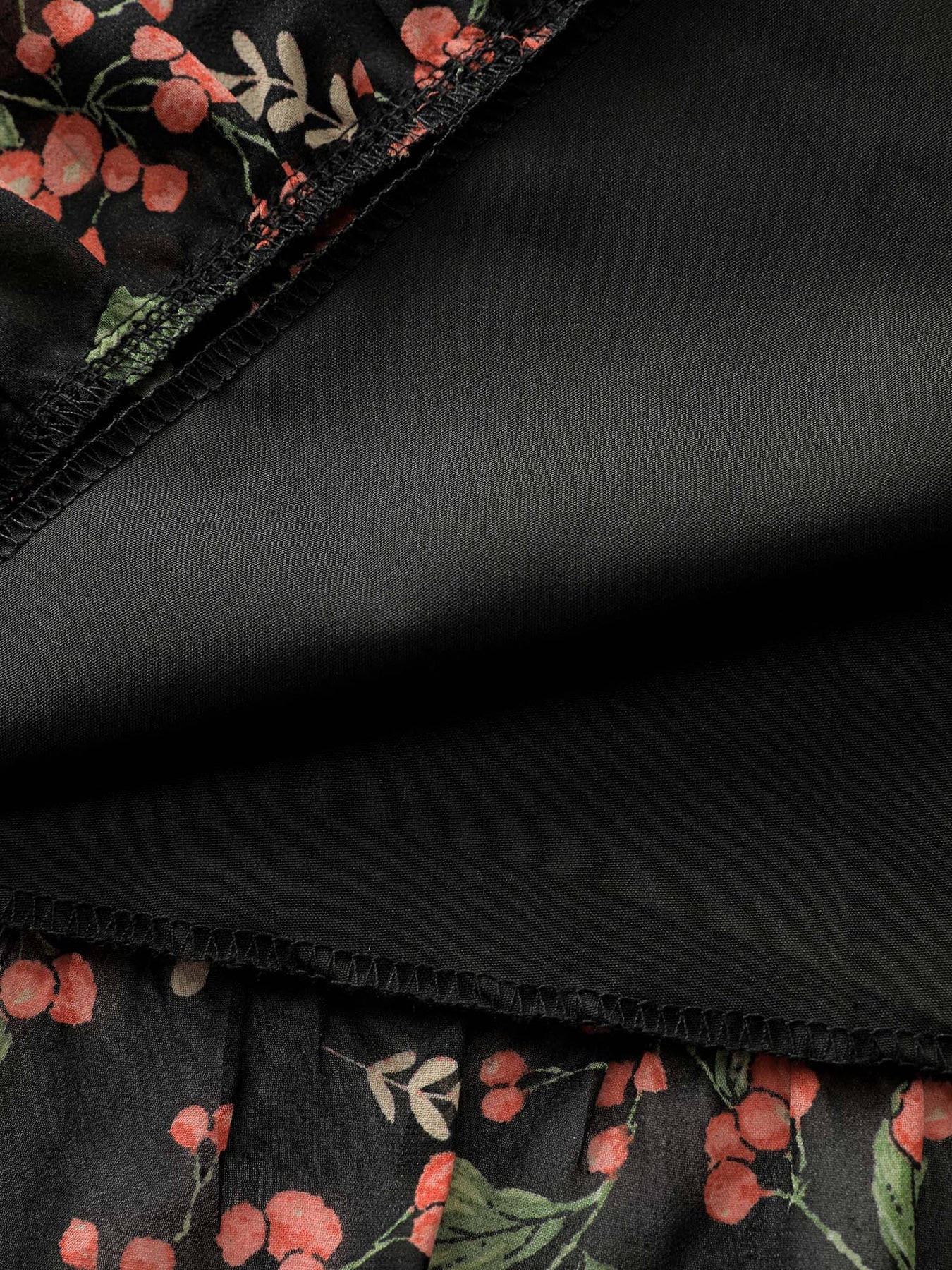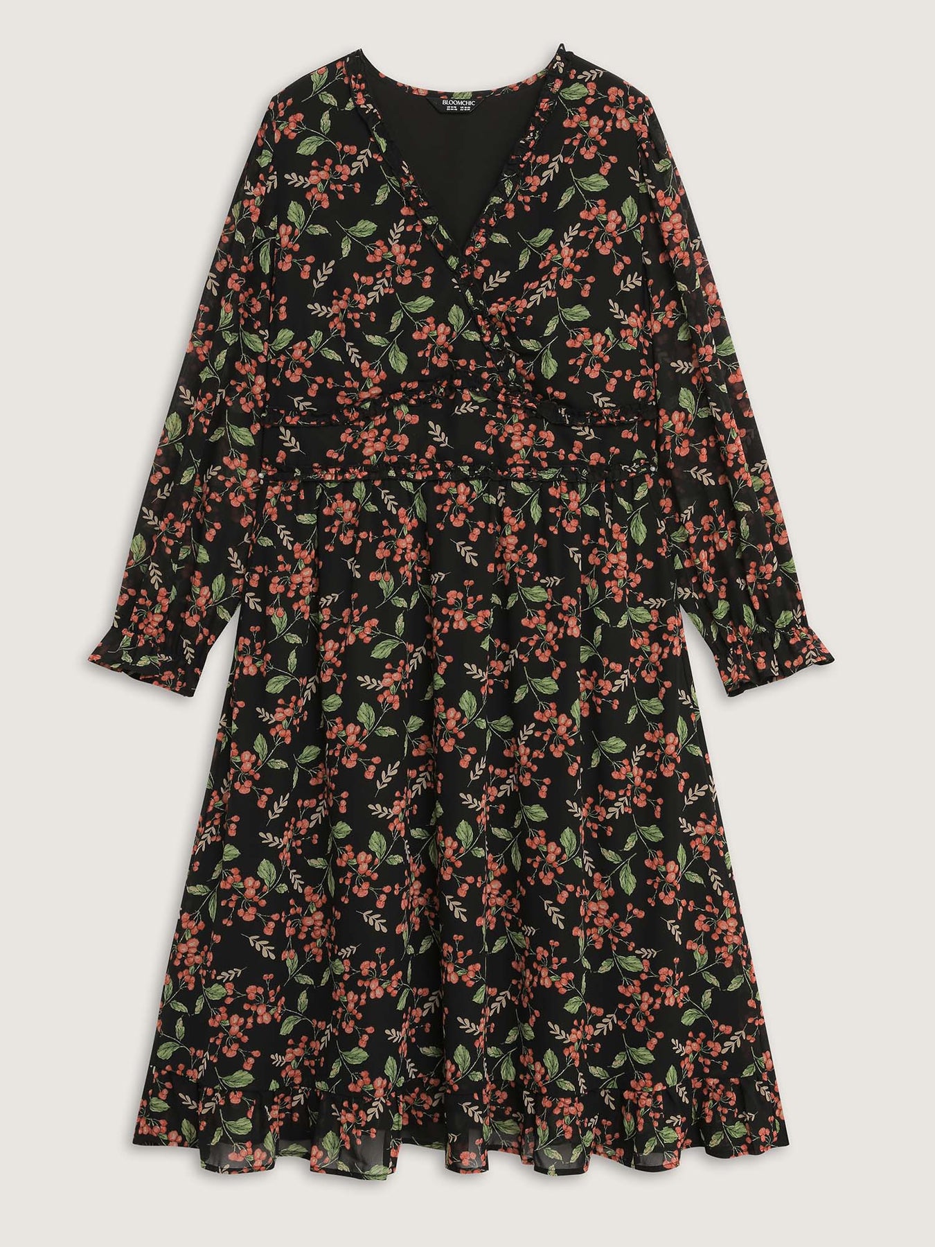 Chiffon Floral Ruffled Trim Pockets Midi Dress