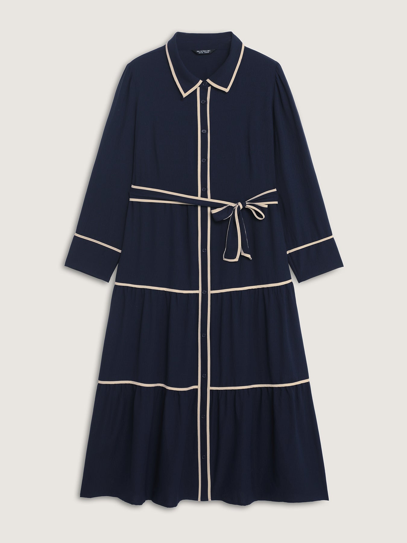 Color Contrast Belted Maxi Shirt Dress