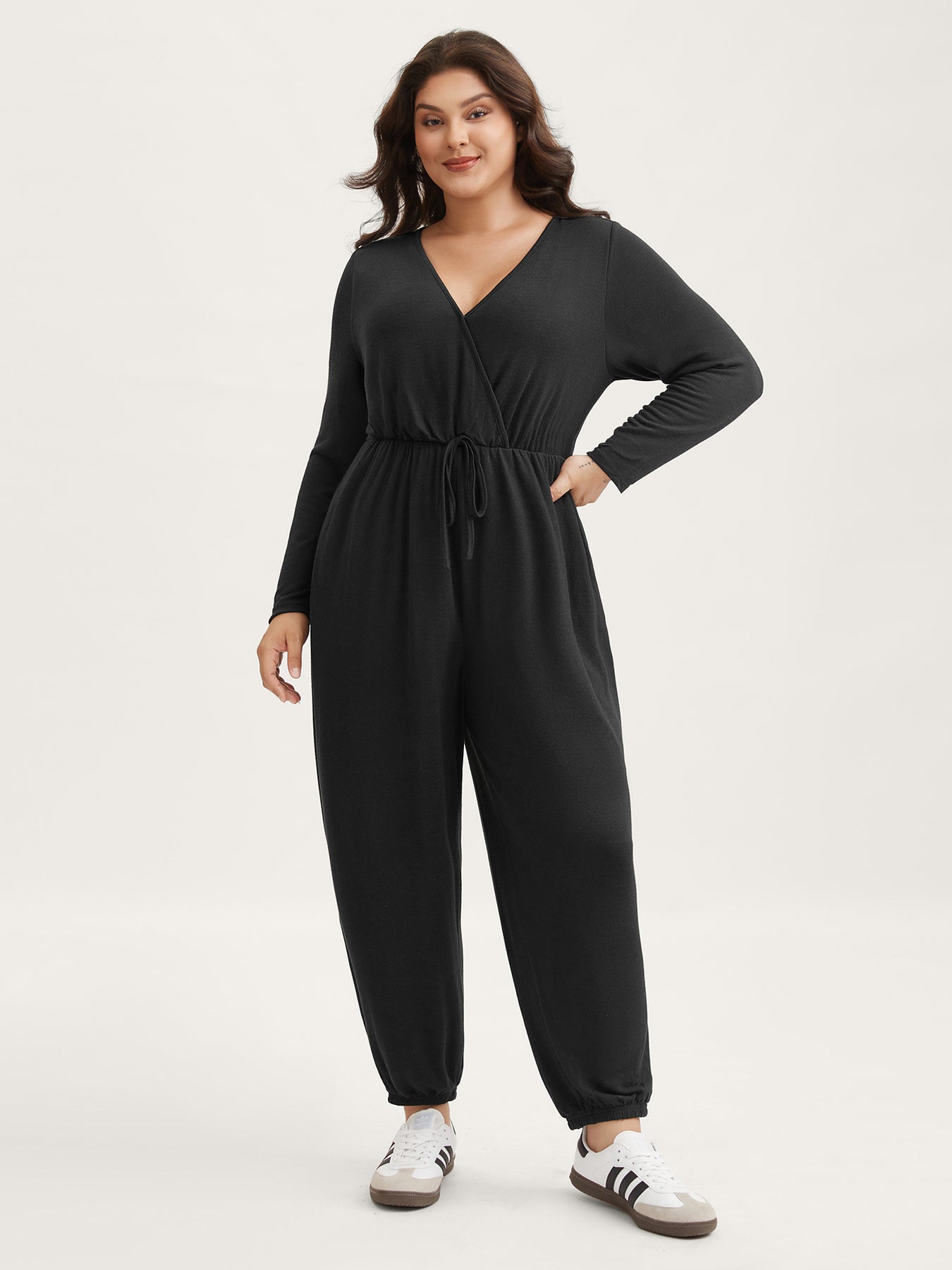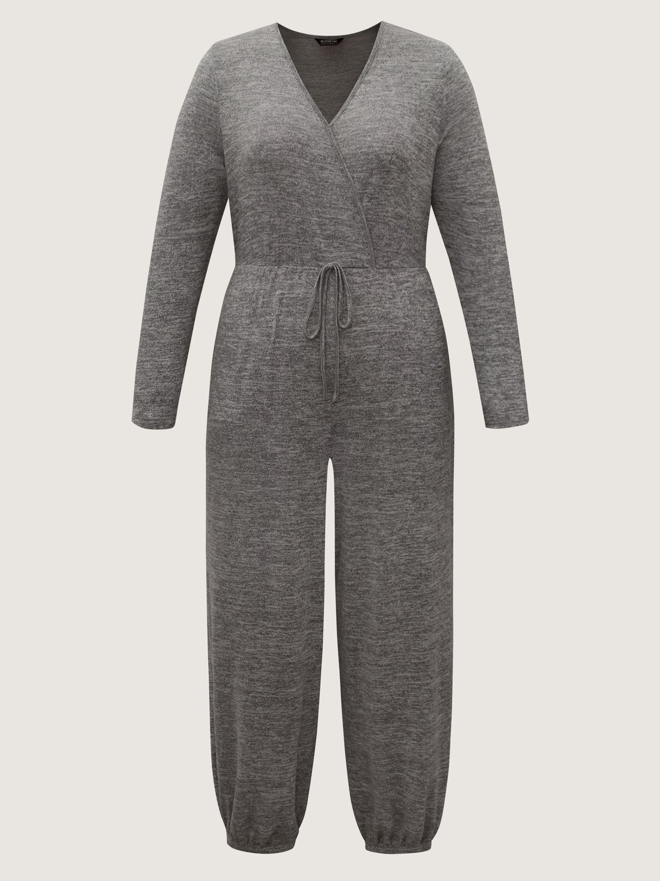 Elastic Waist Overlap Collar Lounge Jumpsuit