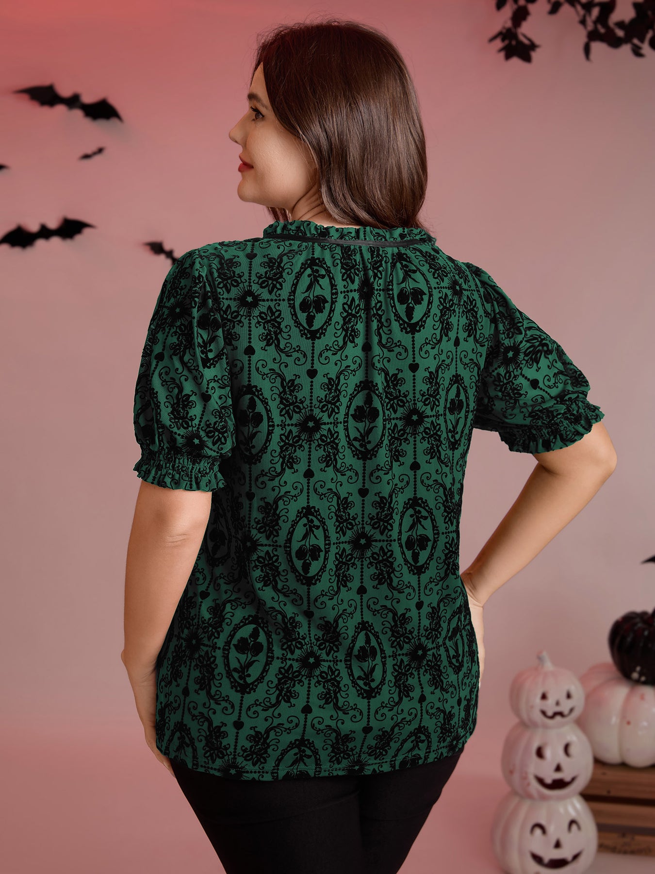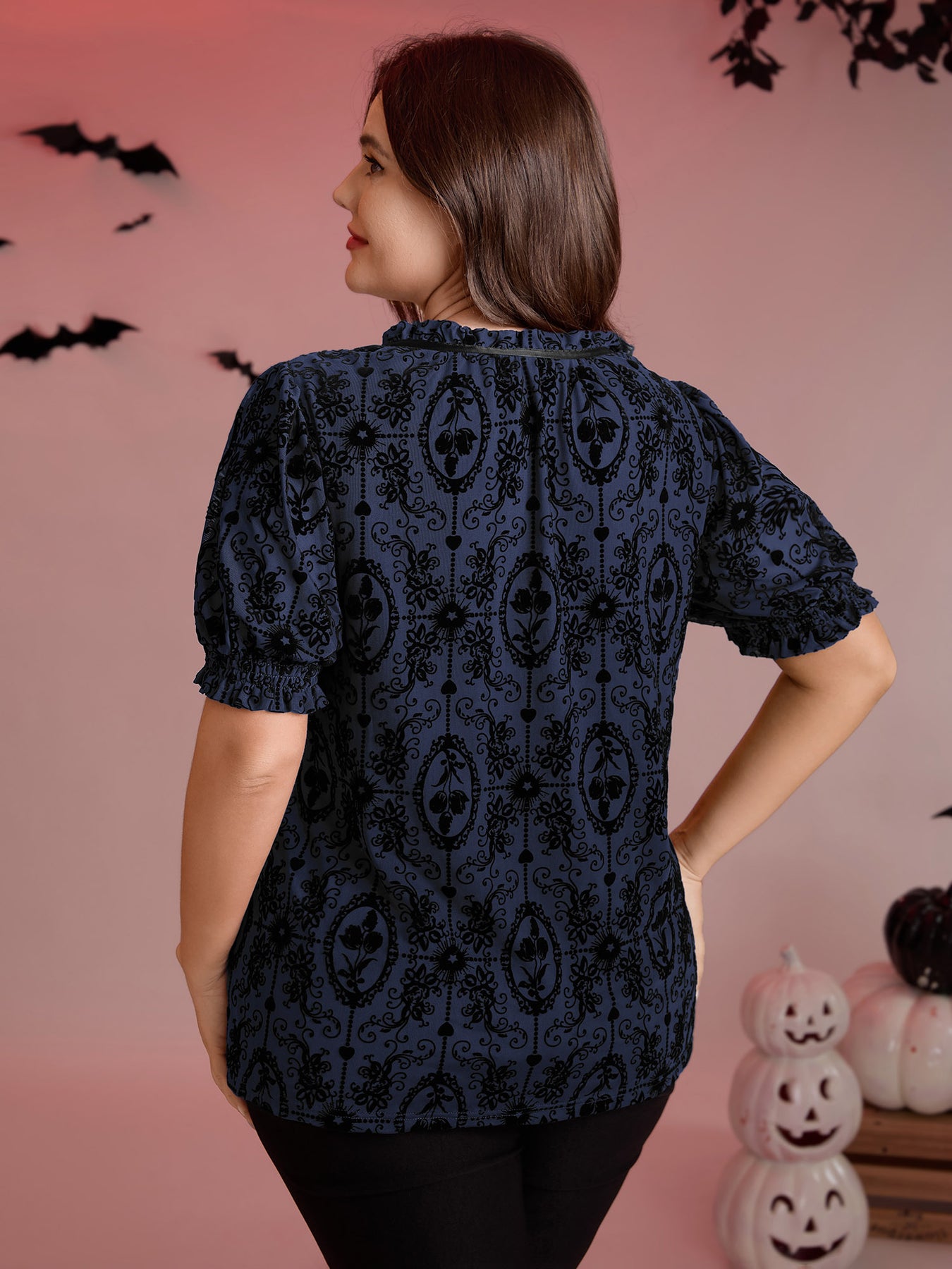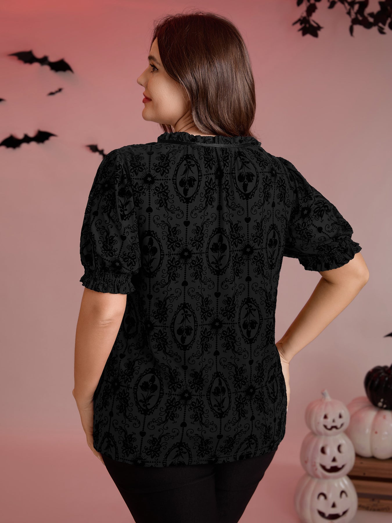 Flocked Texture Shirred Contrast Blouse