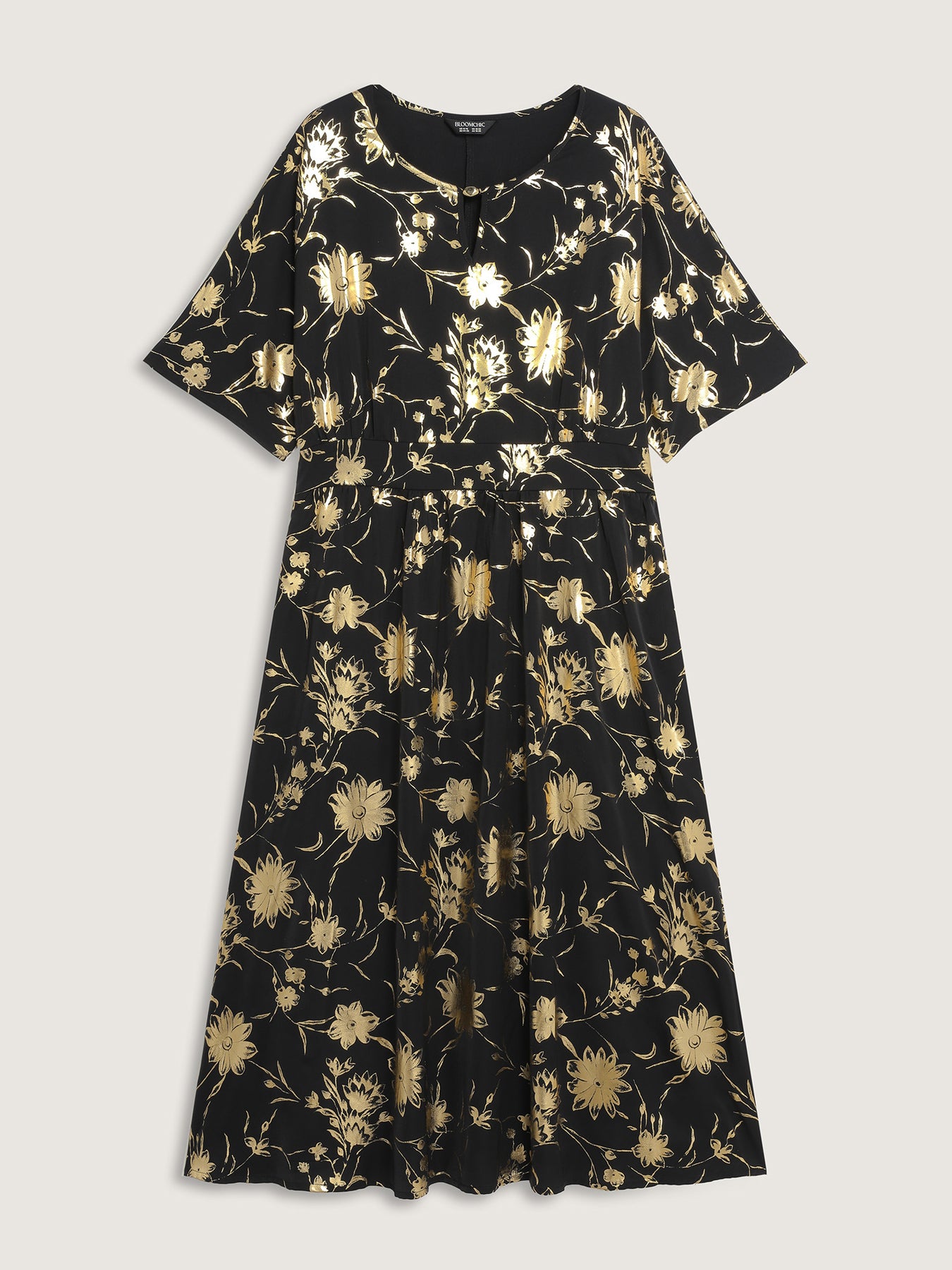 Gold Stamp Shirred Back-Waist Maxi Dress