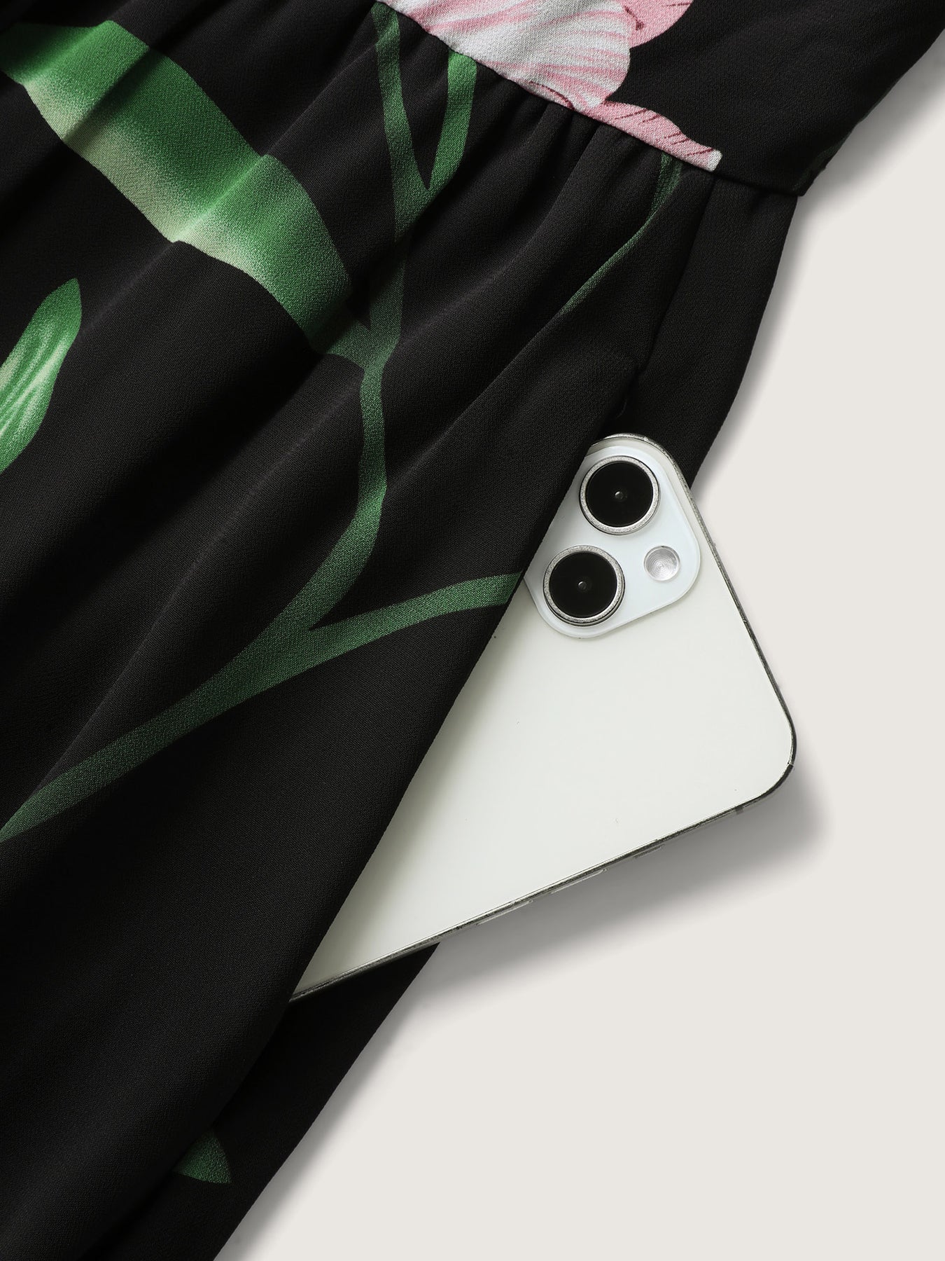 Hidden Zipper Floral Layered Pockets Jumpsuit