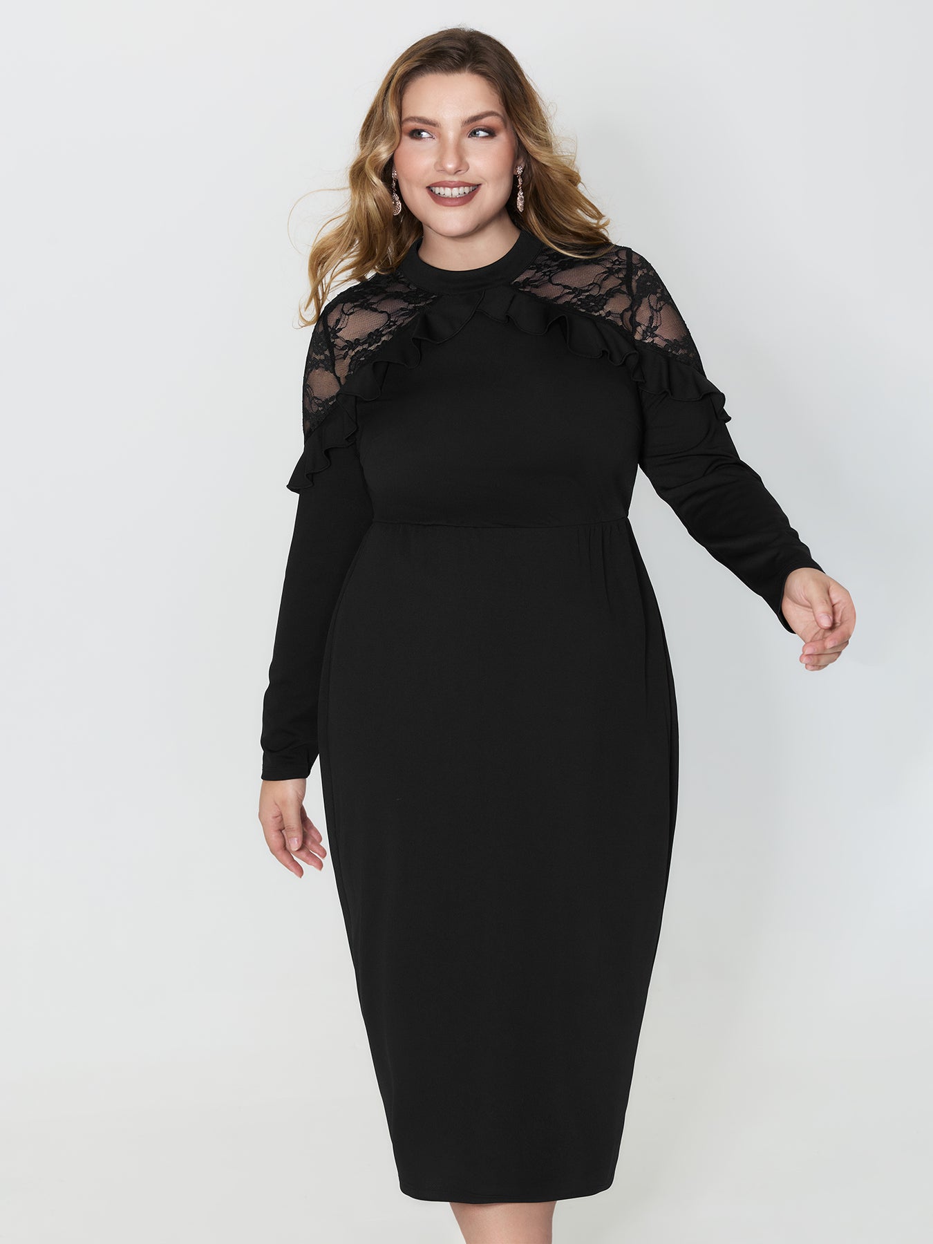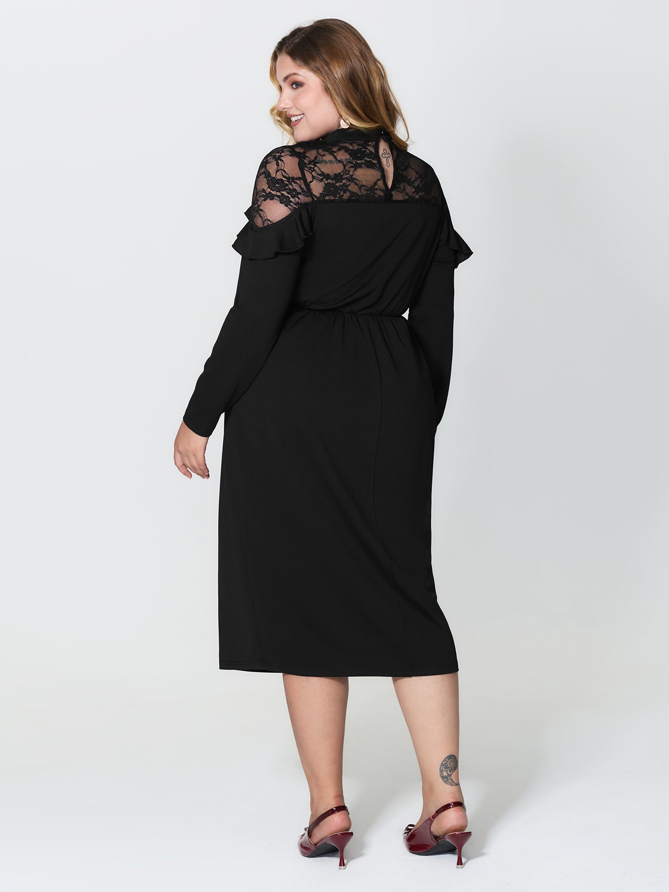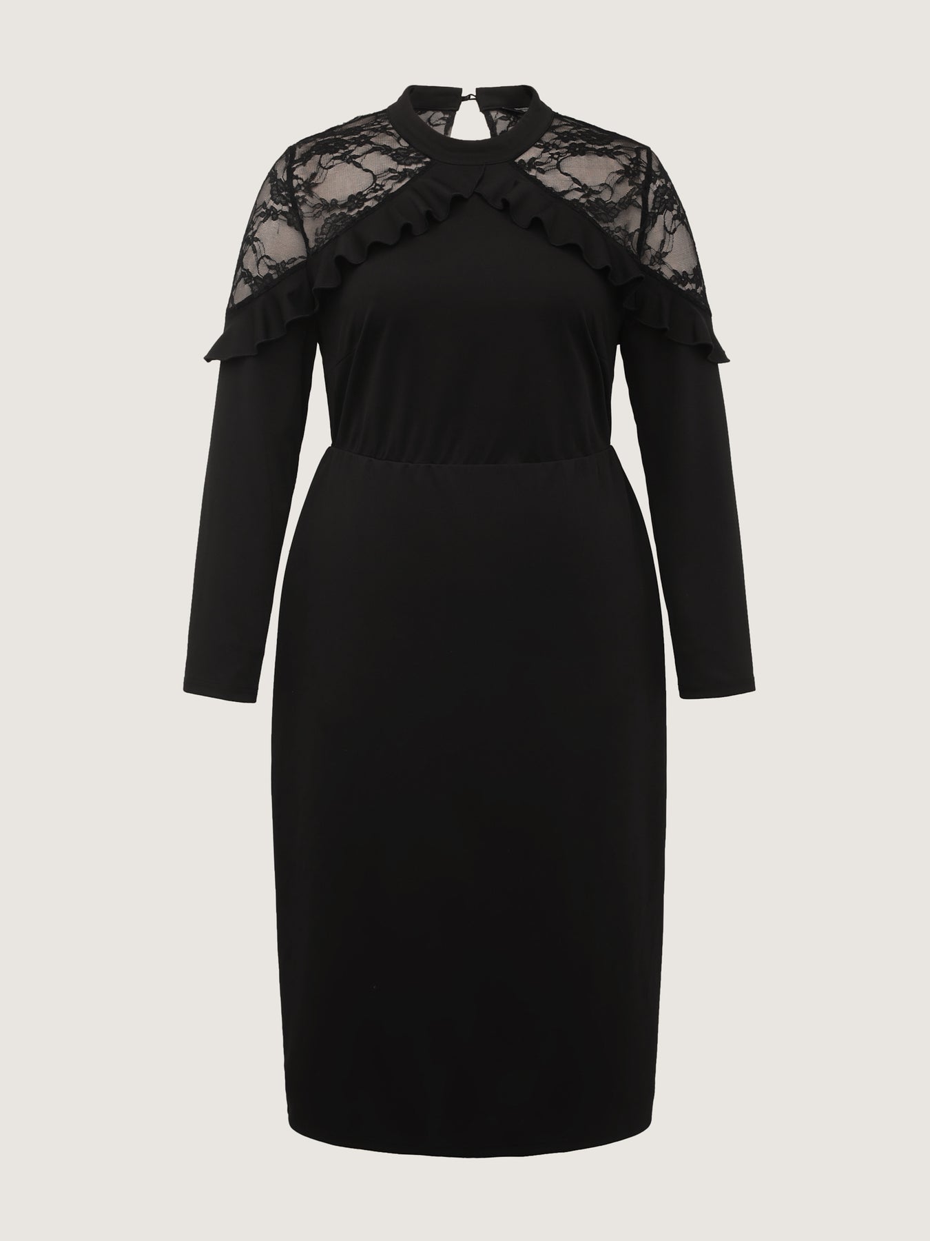 Lace Trim Ruffled Sheer Stretchy Party Dress