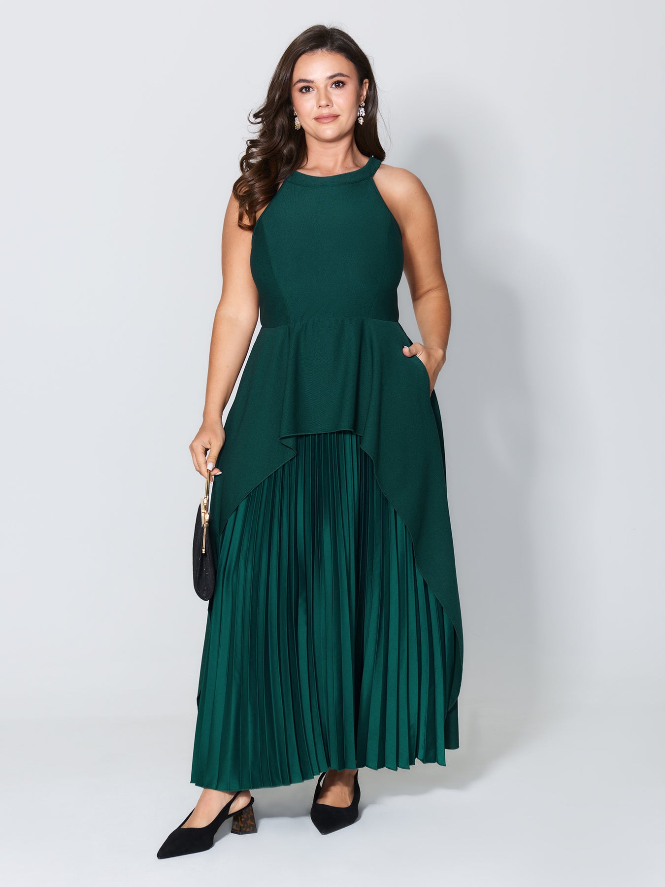 Layered Pleated Skirt Sleeveless Maxi Dress