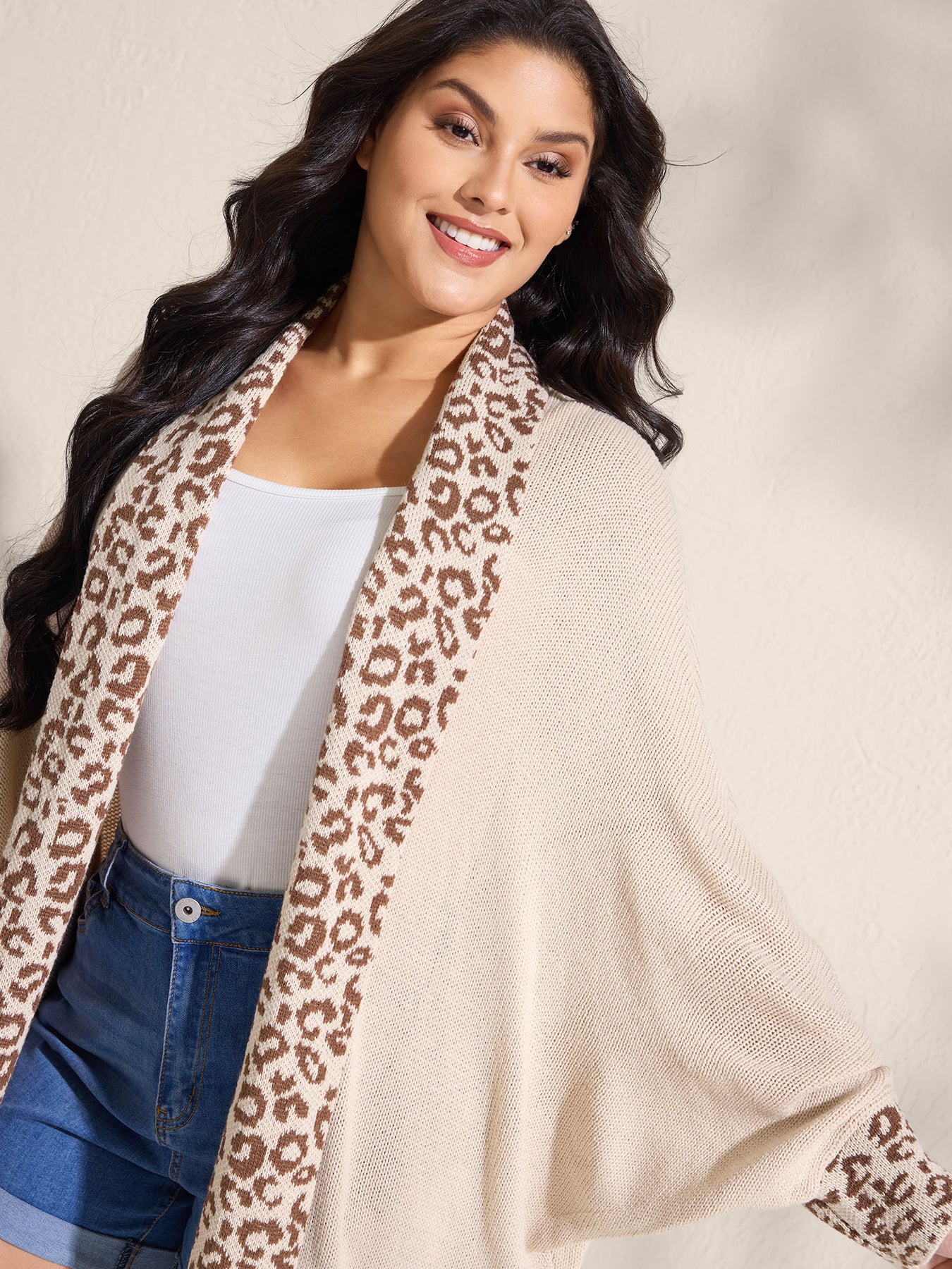 Leopard Collar Dolman Sleeve Knit Cardigan