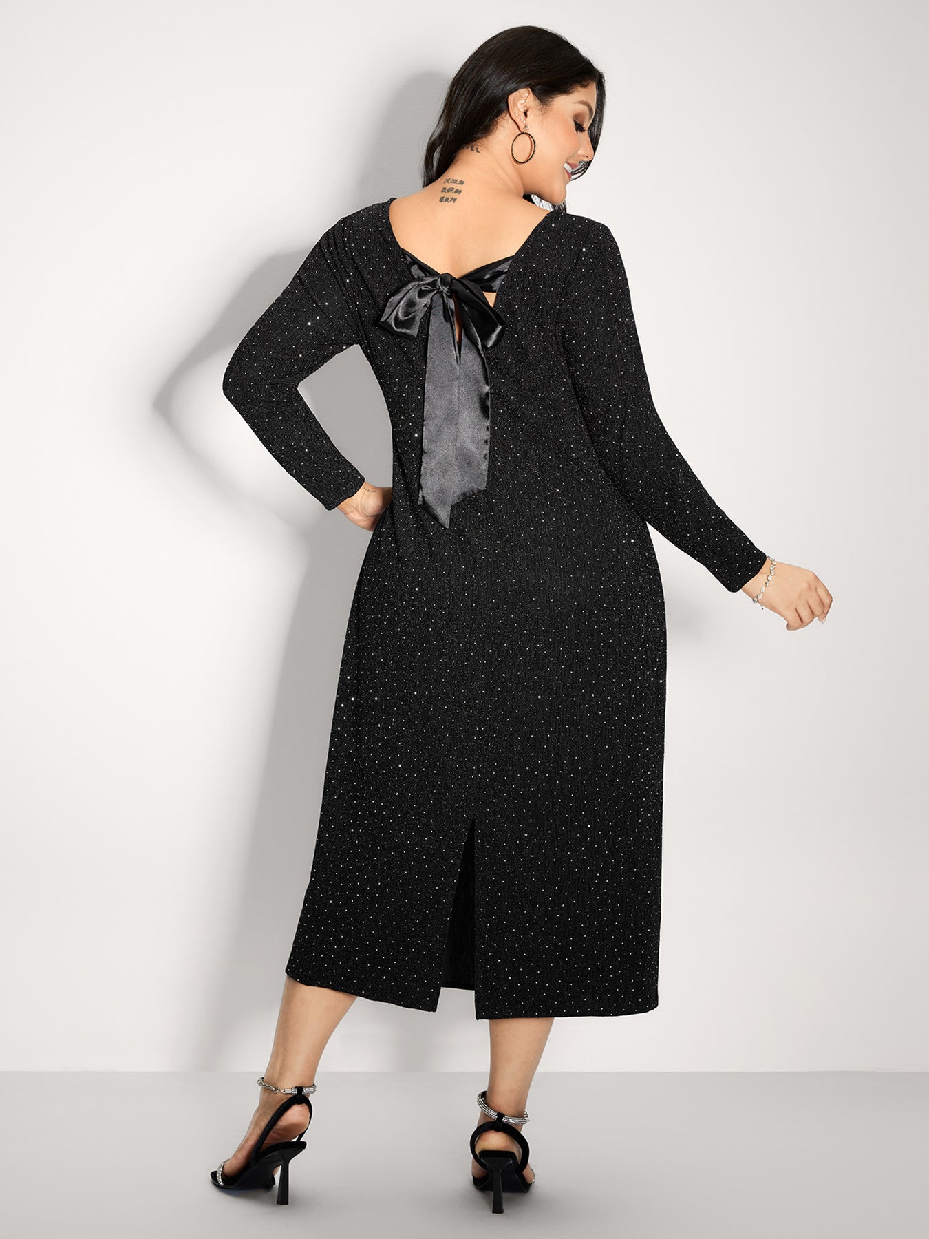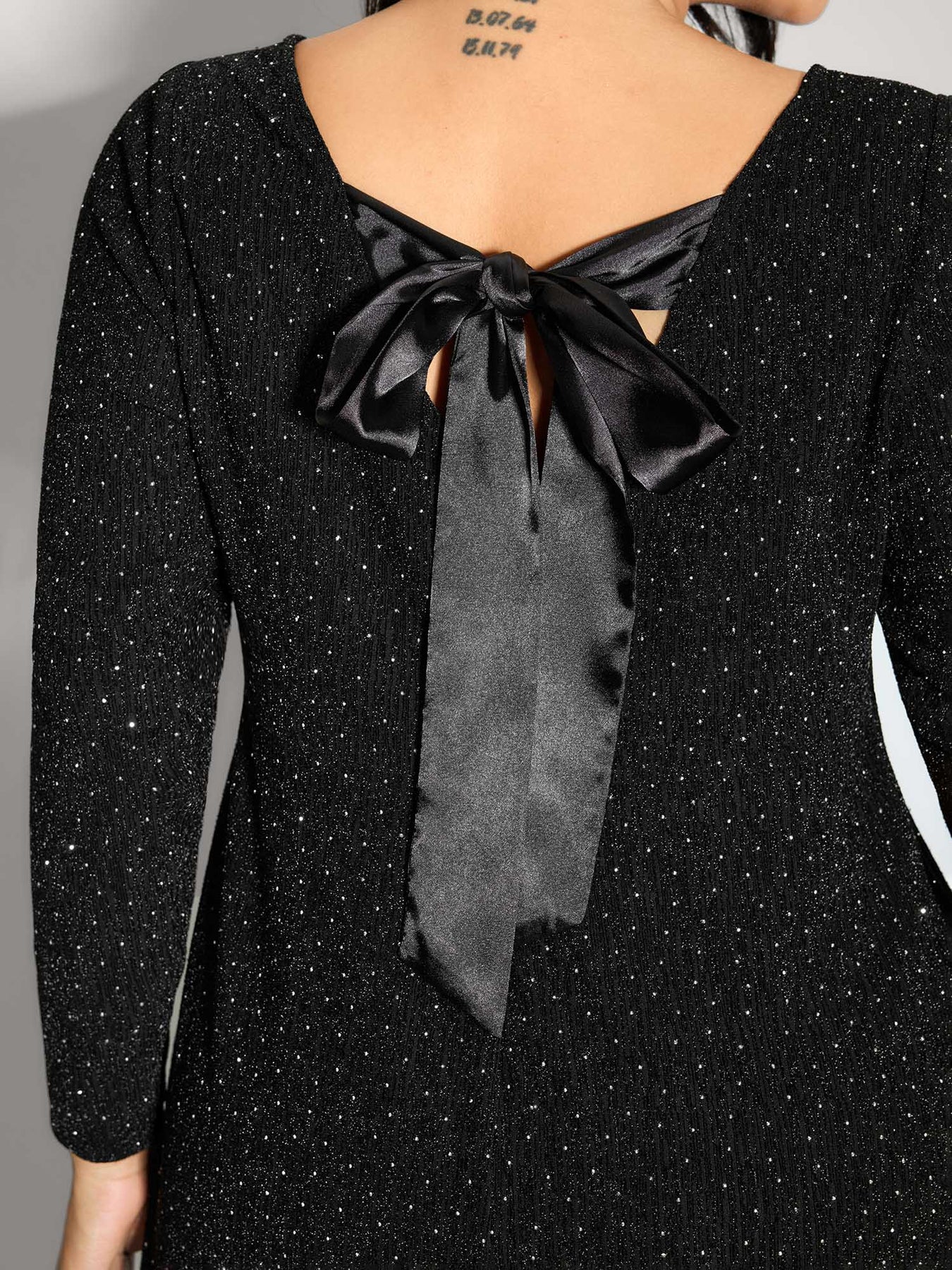 Metallic Detail Shimmery Back Bow Midi Dress