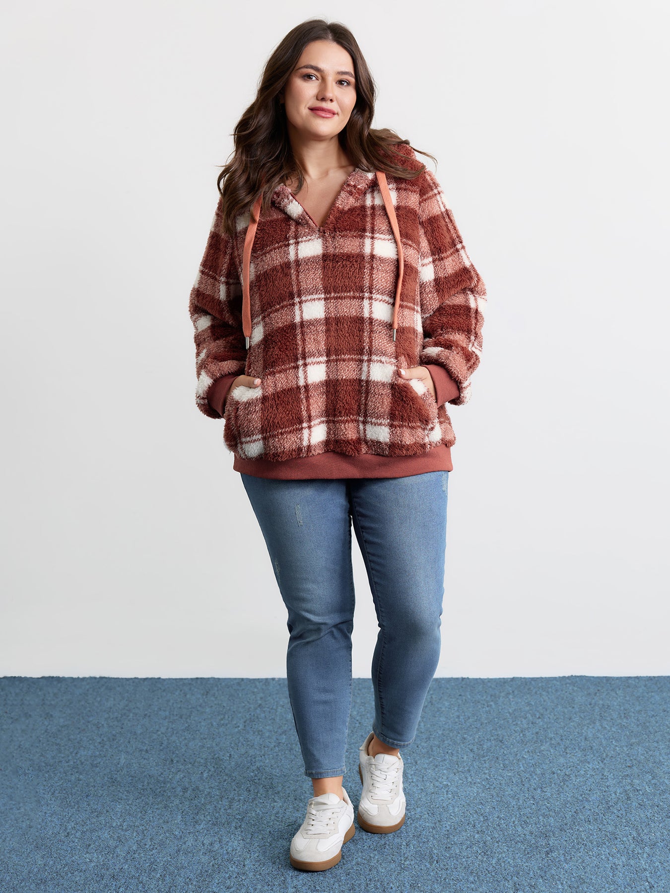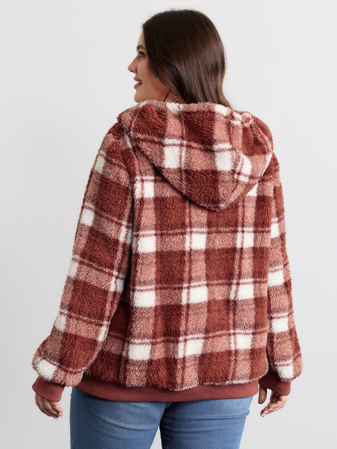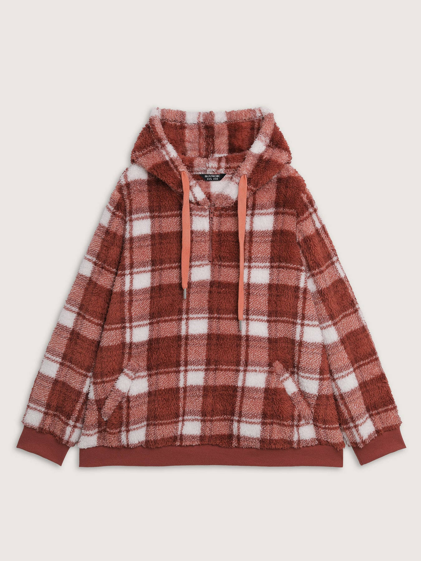 Plaid Plush Slant Pockets Hoodie