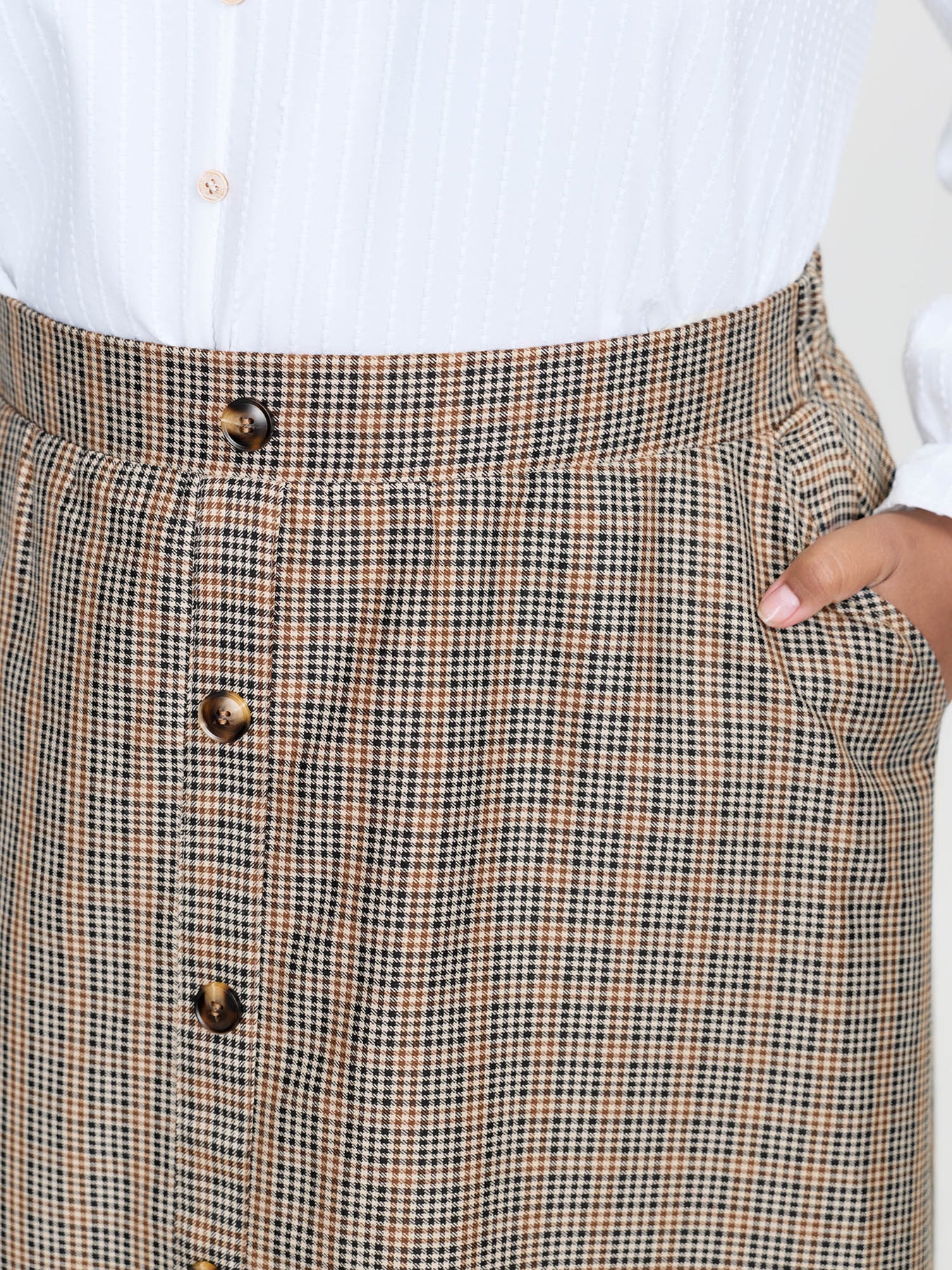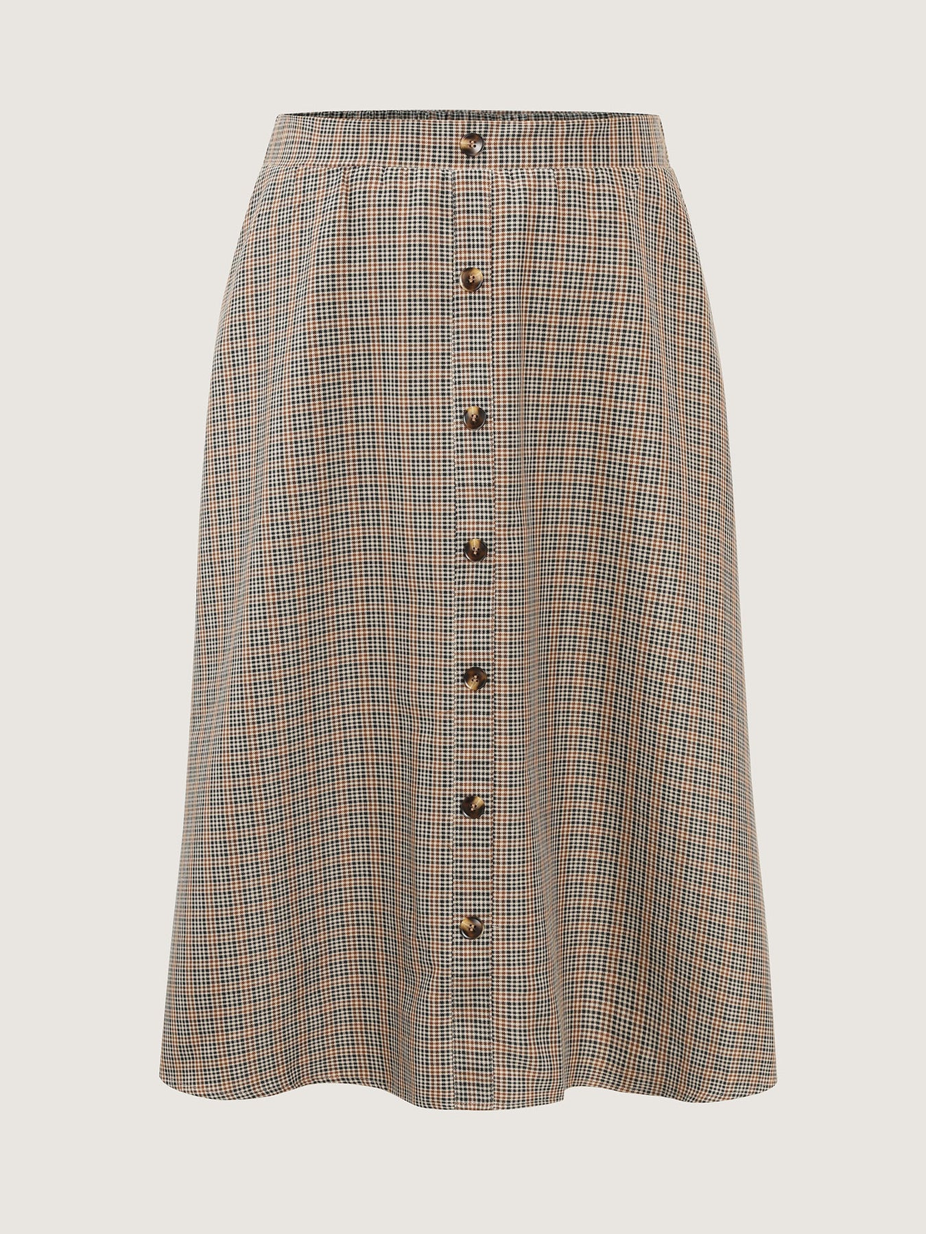 Retro Check Pattern Button Decor Midi Skirt