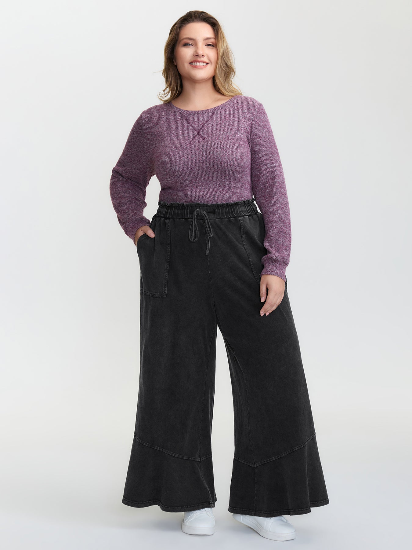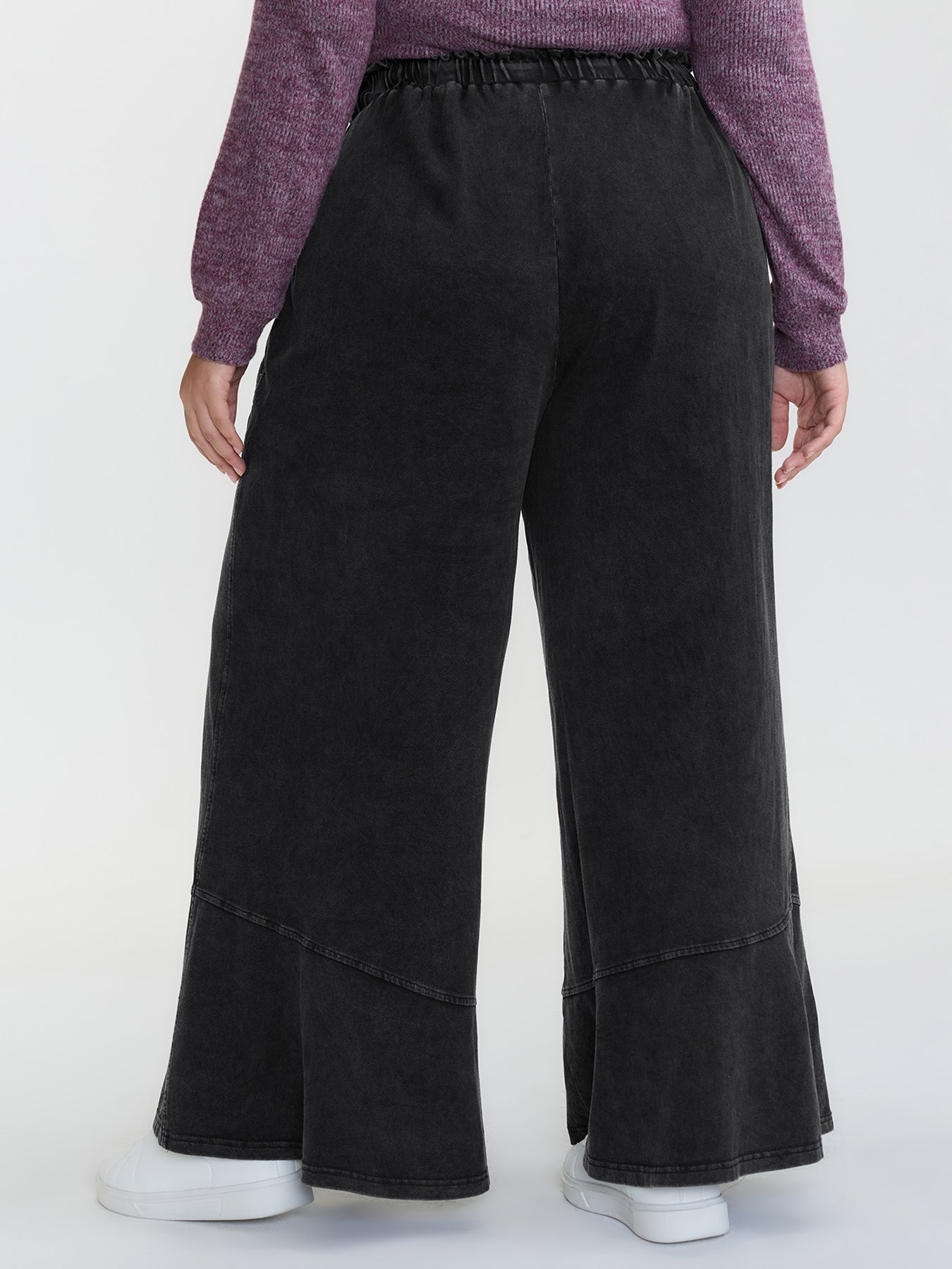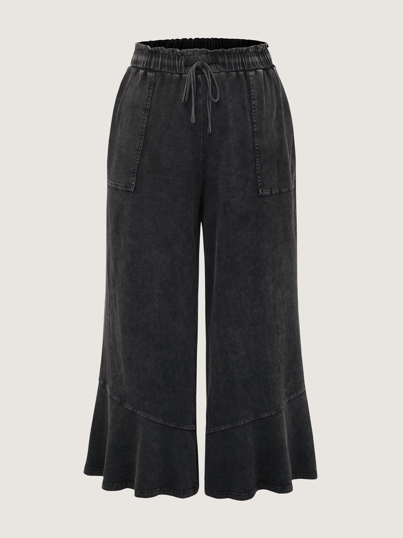 Retro Wash Ruffled Hem Wide-Leg Pants