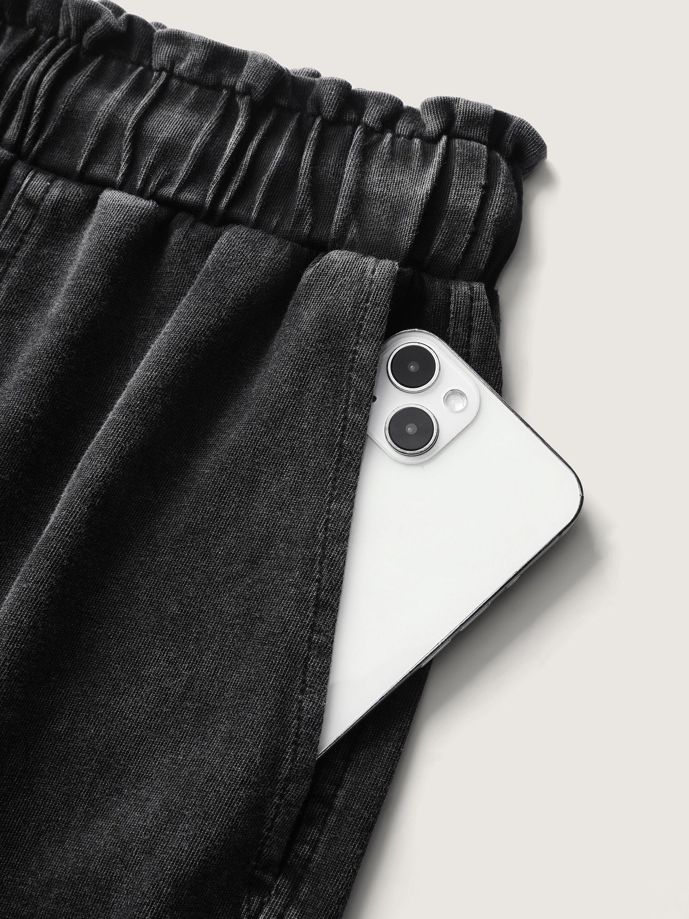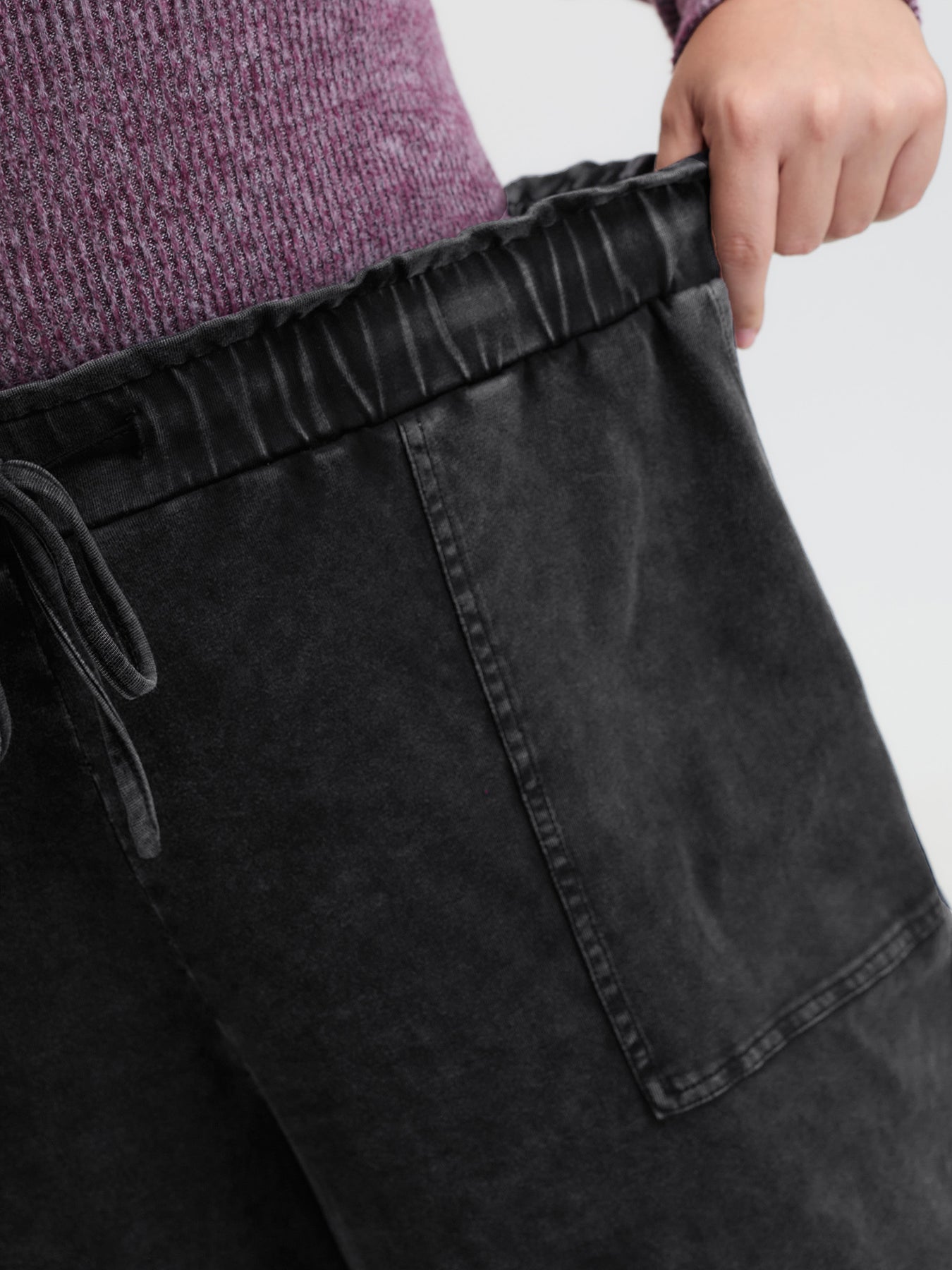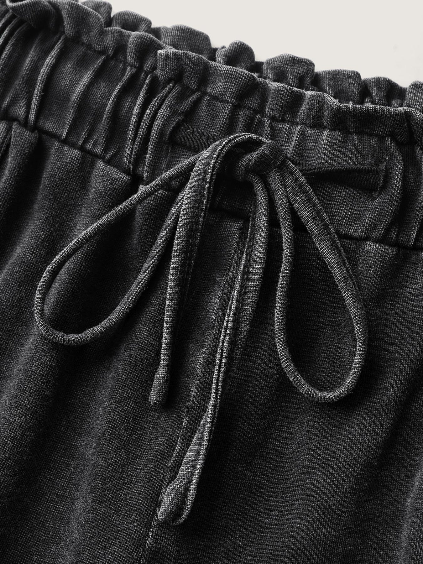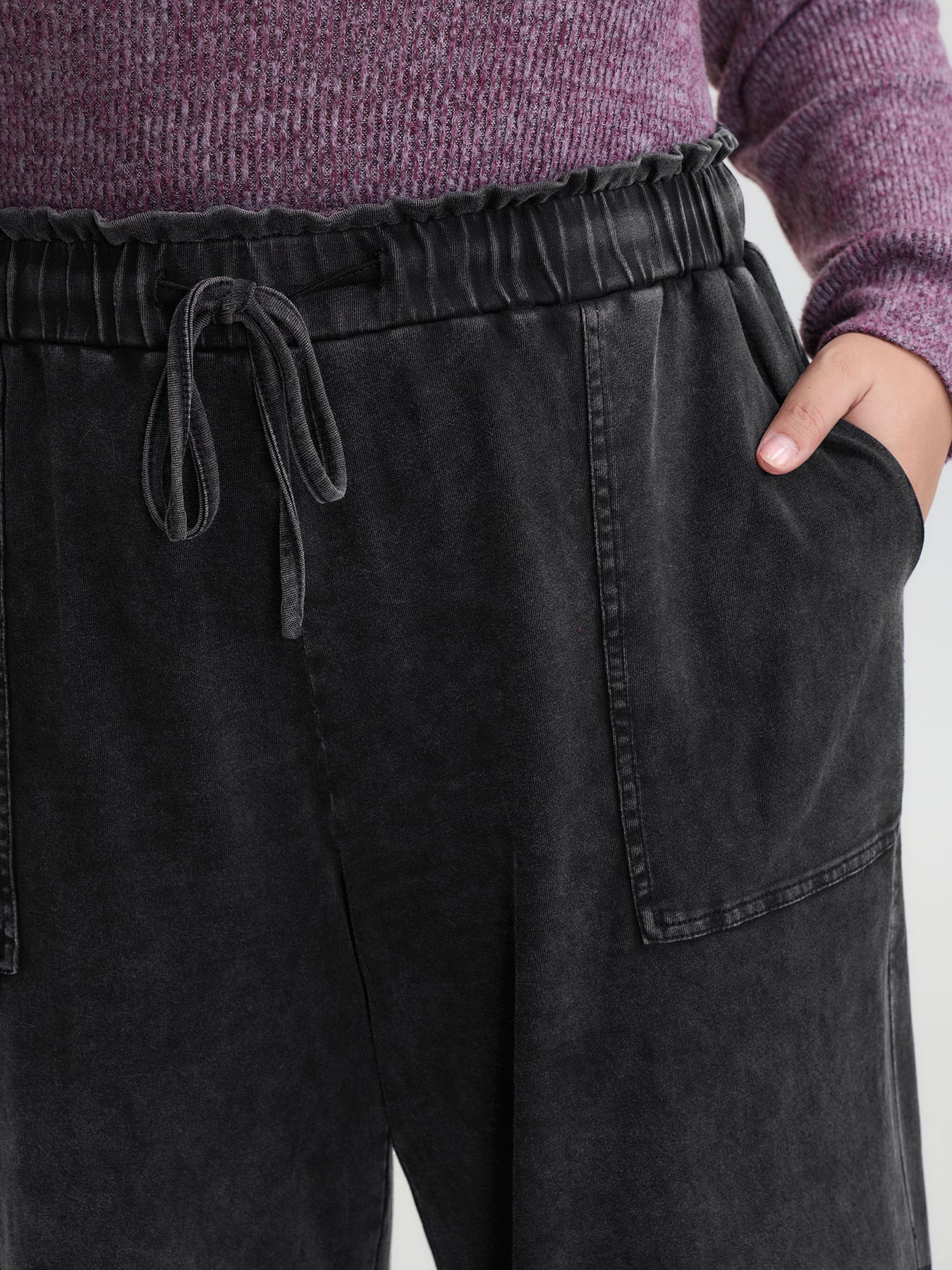Retro Wash Ruffled Hem Wide-Leg Pants