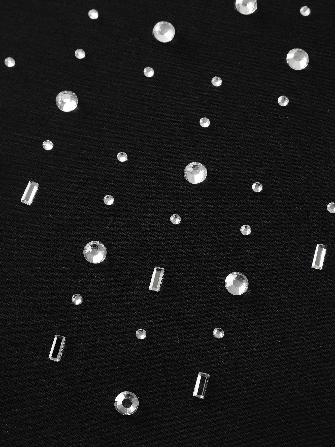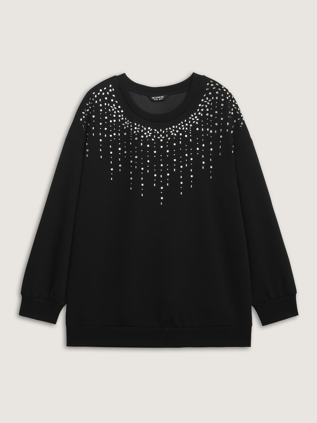 Rhinestone Relaxed-Fit Round Neck Sweatshirt