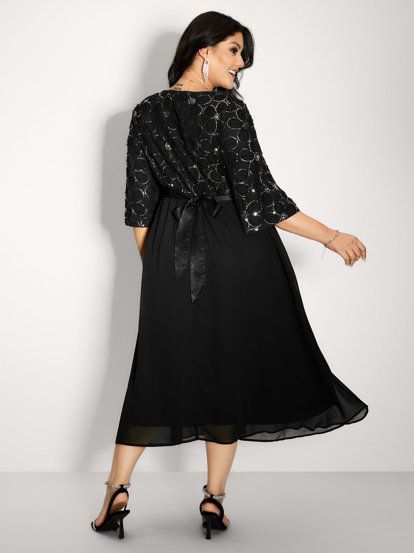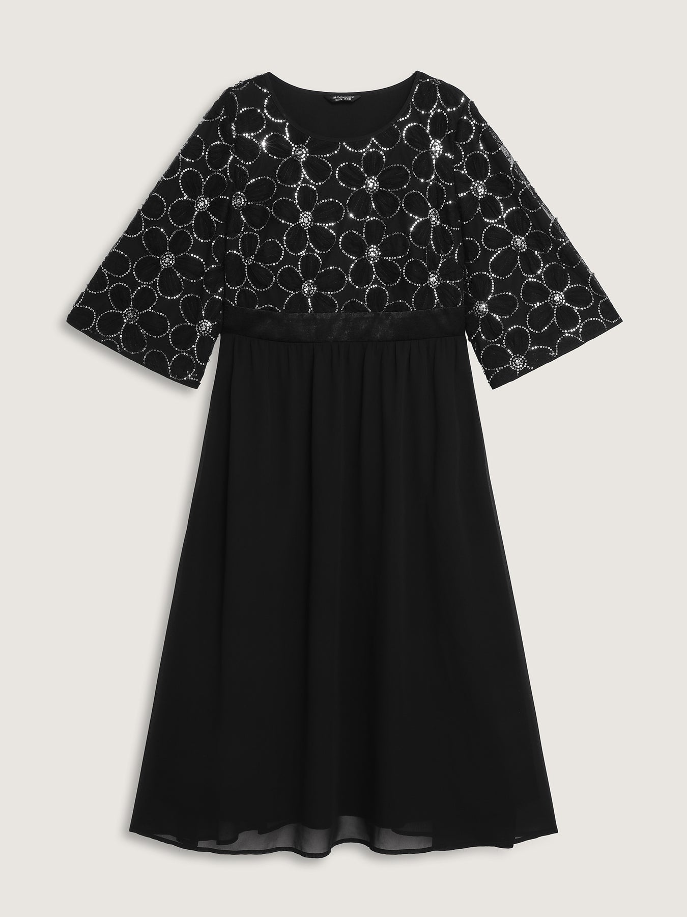 Sequin Floral Tulle Shirred Waist Maxi Dress