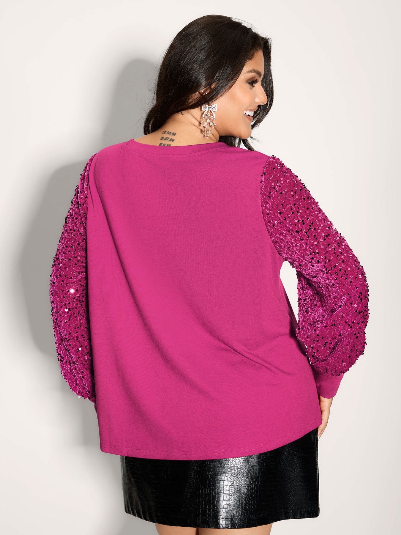 Sequin Spliced Cut-Out Neck Sweatshirt