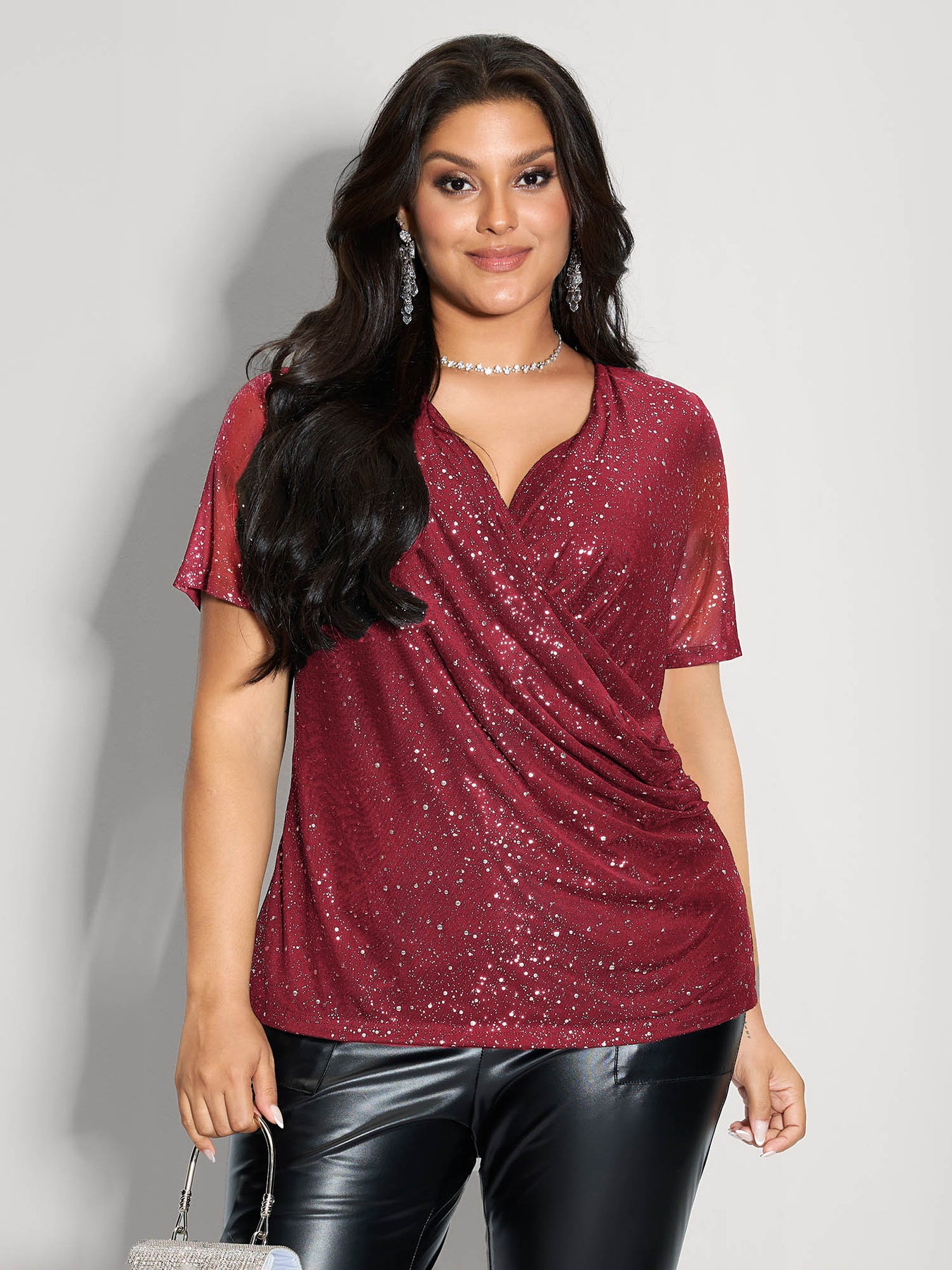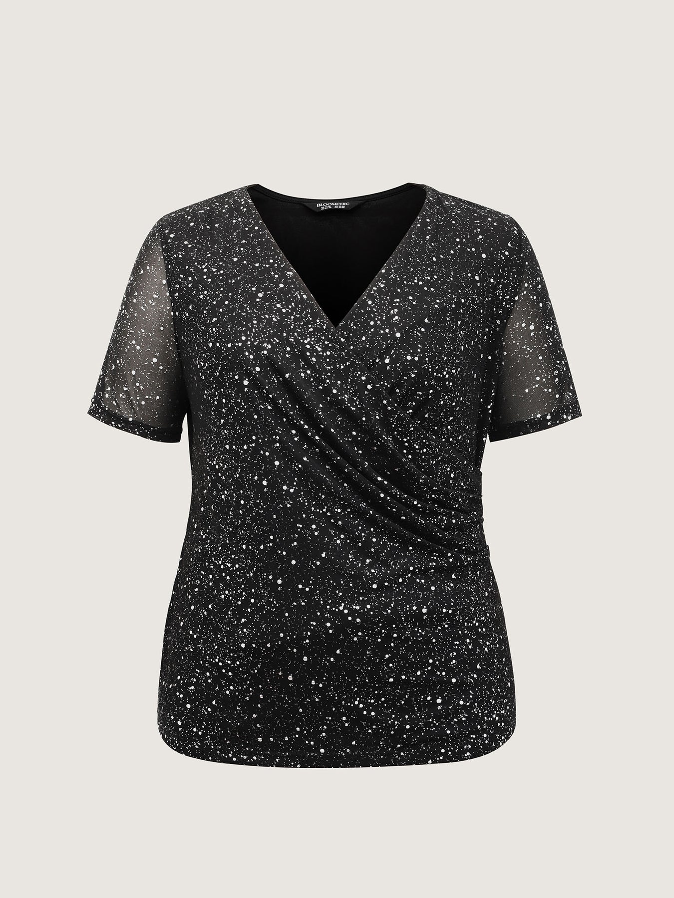 Shimmery Gold Stamped Sheer Sleeve T-Shirt