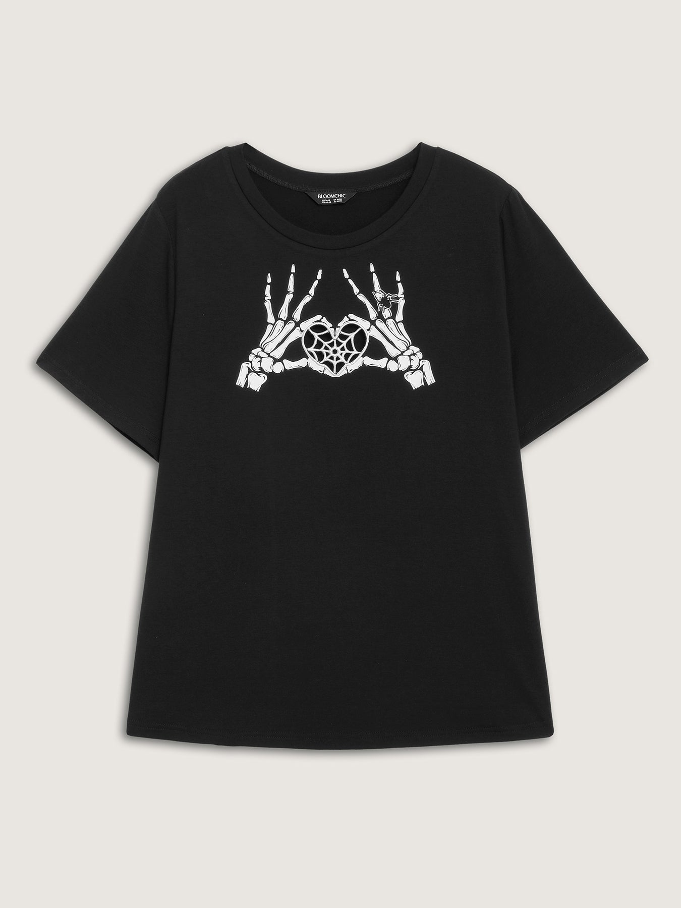 Skeleton Heart Embroidered Cut-Out T-Shirt