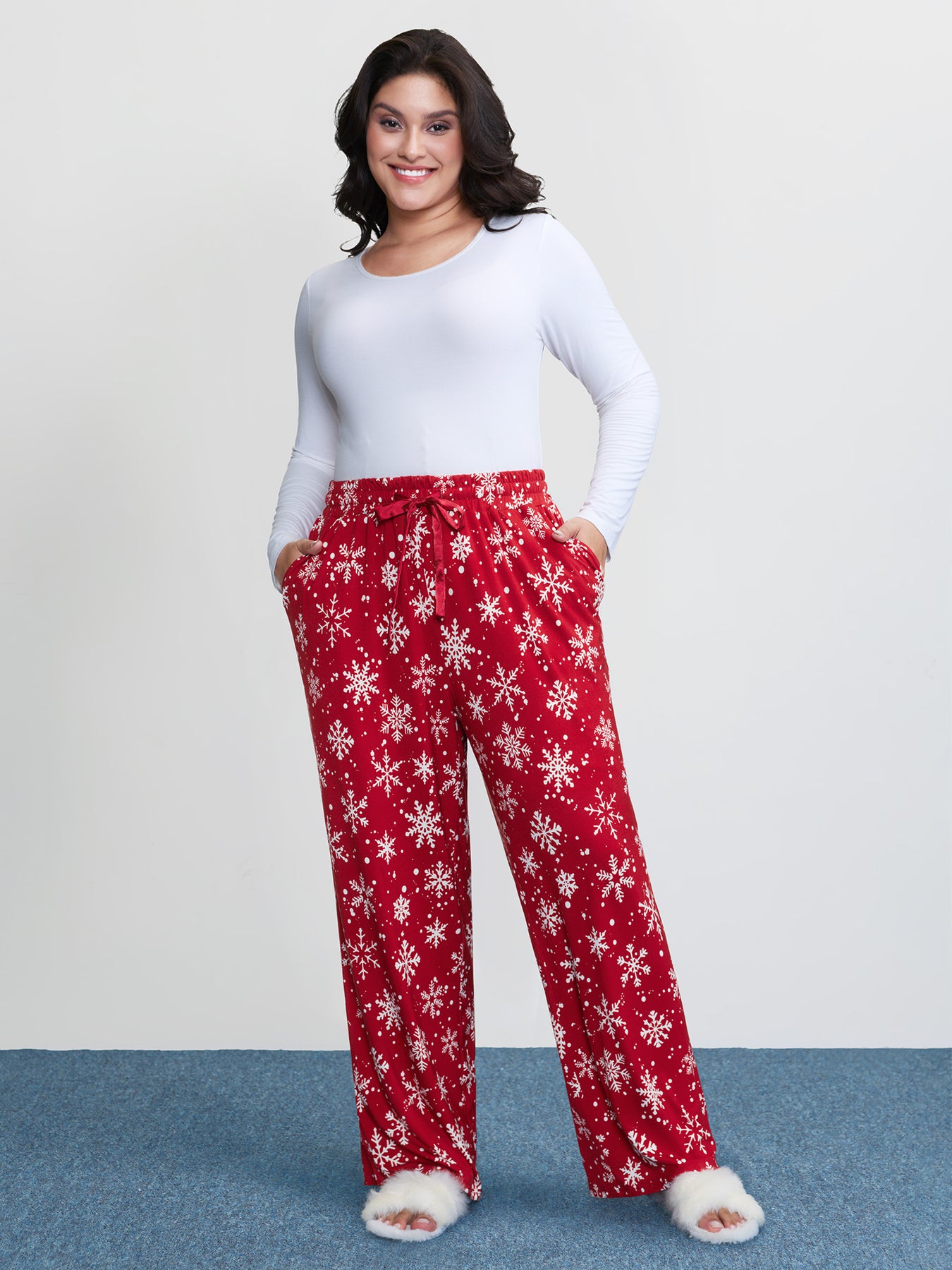 Snowflake Pattern Drawstring Waist Lounge Bottoms