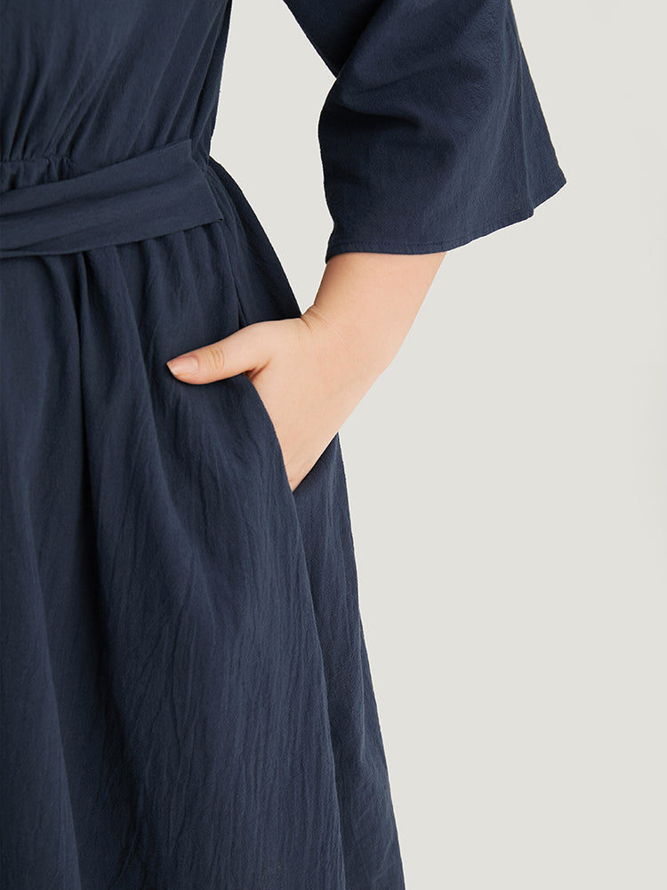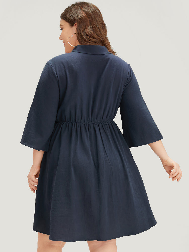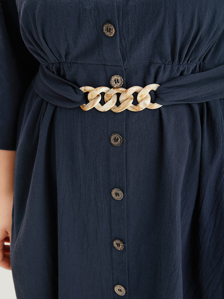 Solid Pocket Metal Buckle Detail Shirt Collar Dress