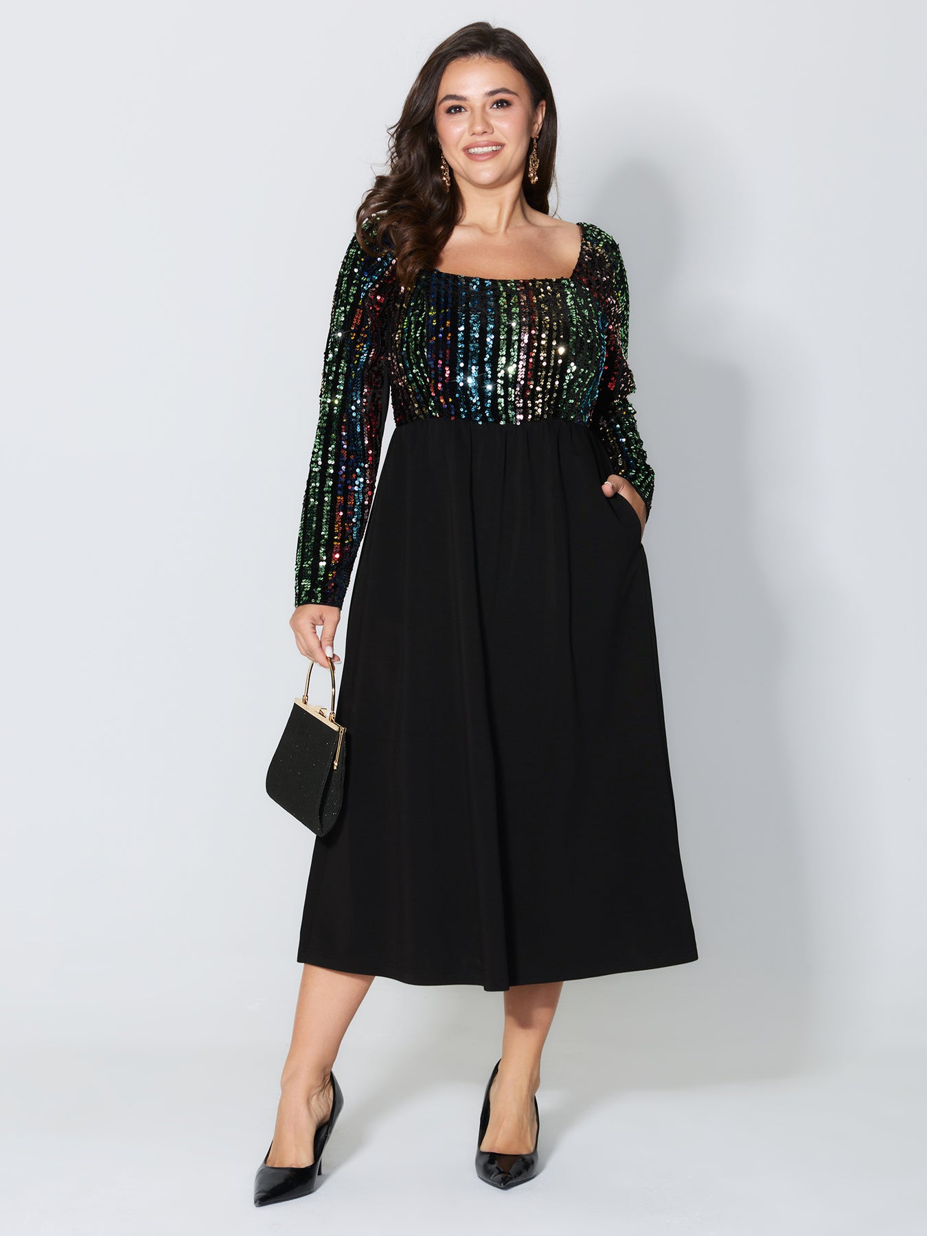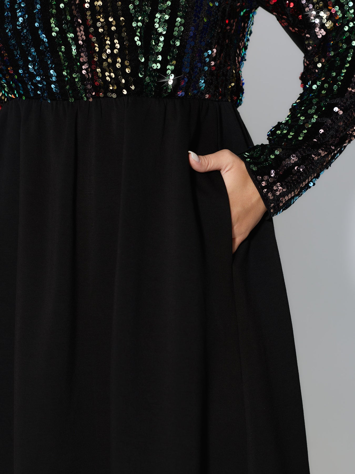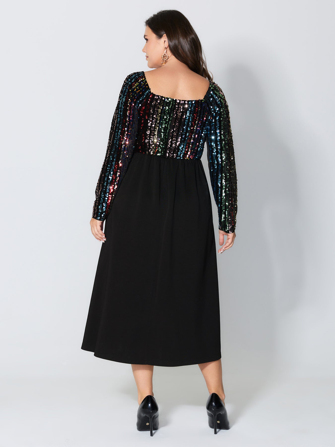 Sparkly Colorful Sequins Contrast Midi Dress