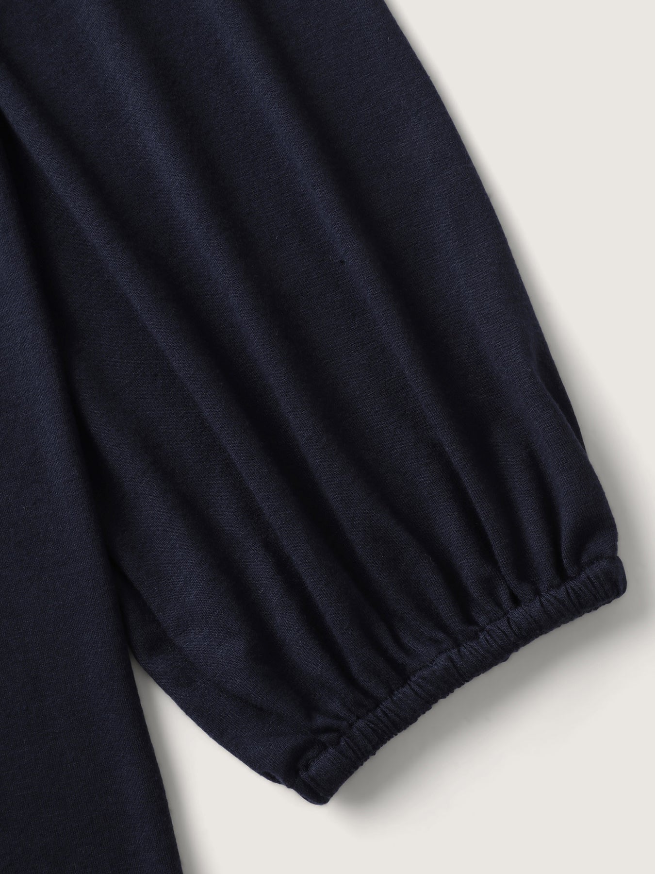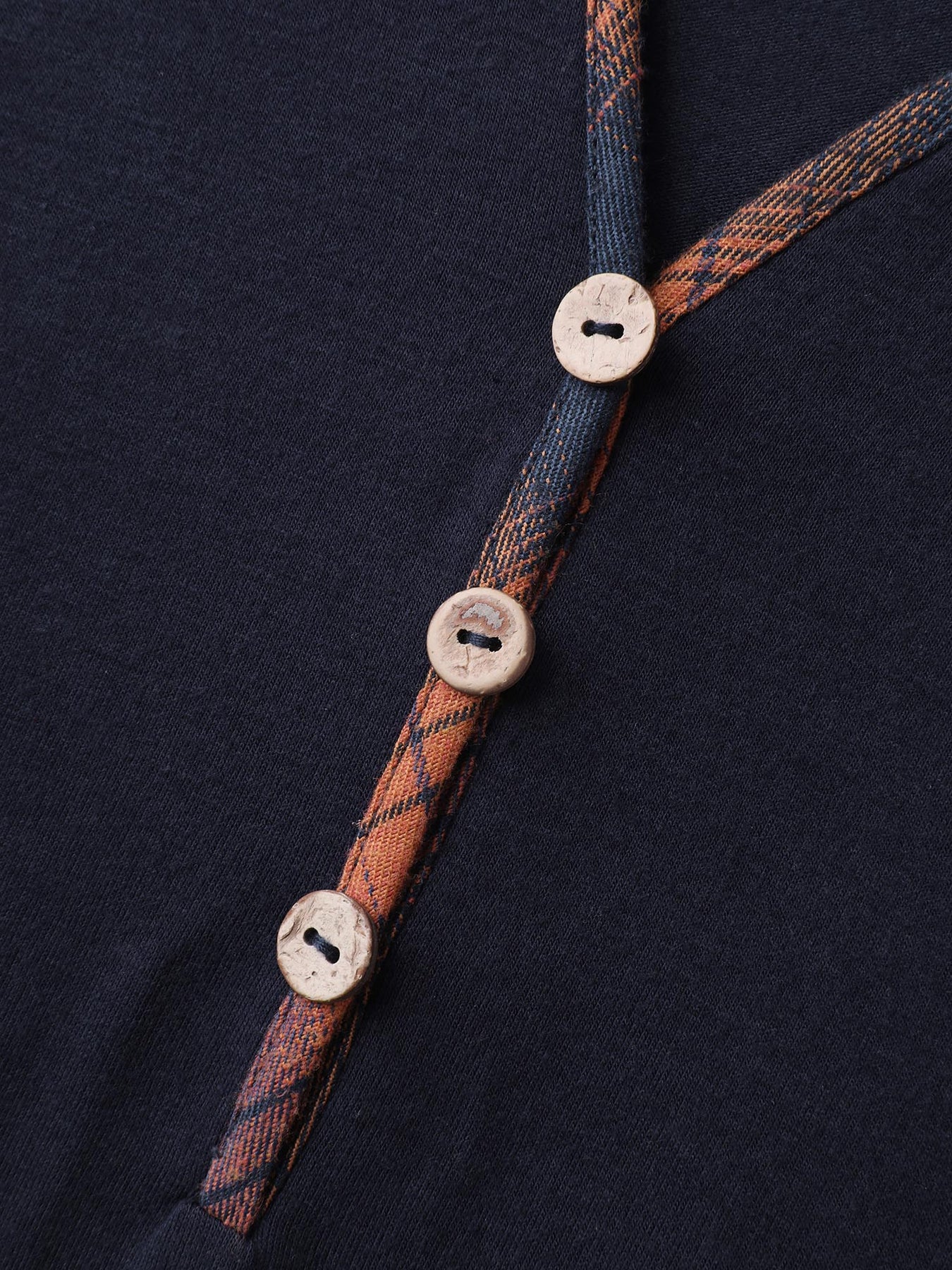 Stretchy Plaid Sleeve Split Neck T-Shirt