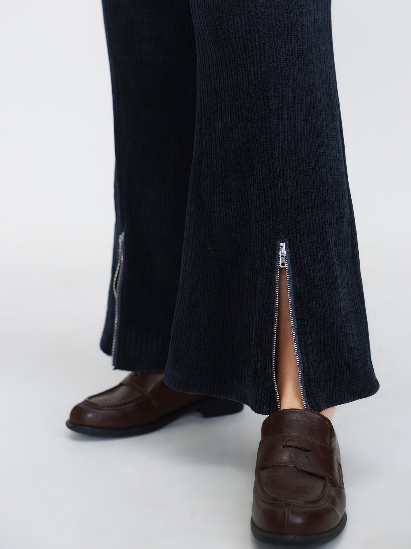 Stretchy Textured Slit Hem Zipper Detail Pants