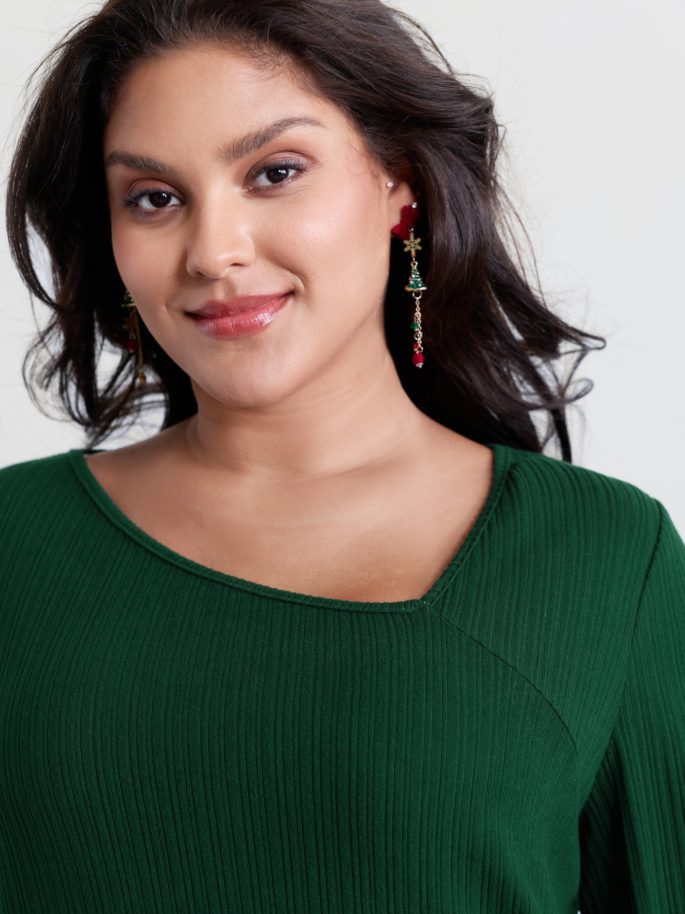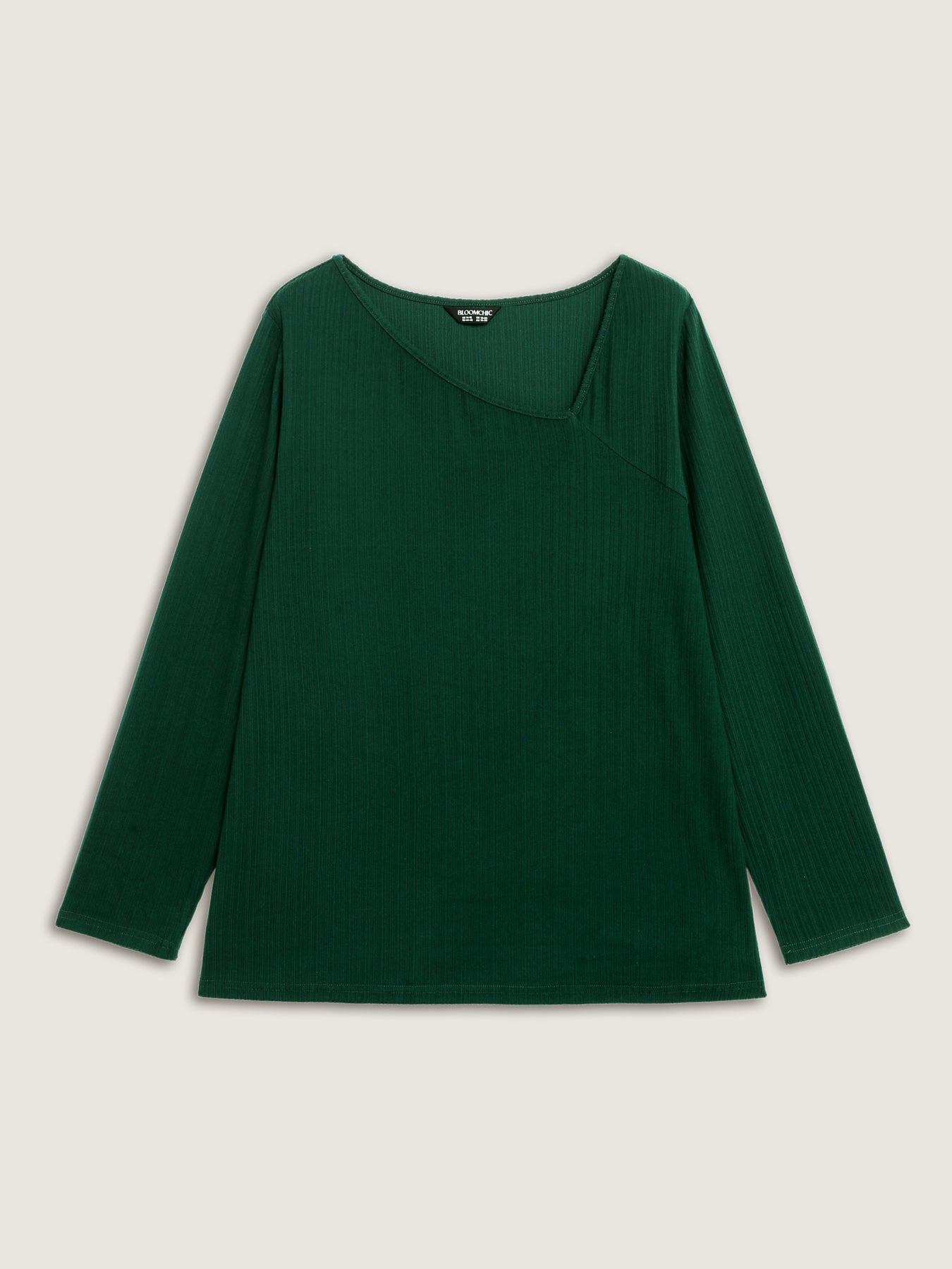 Super Stretchy Ribbed Asymmetrical Neck T-Shirt