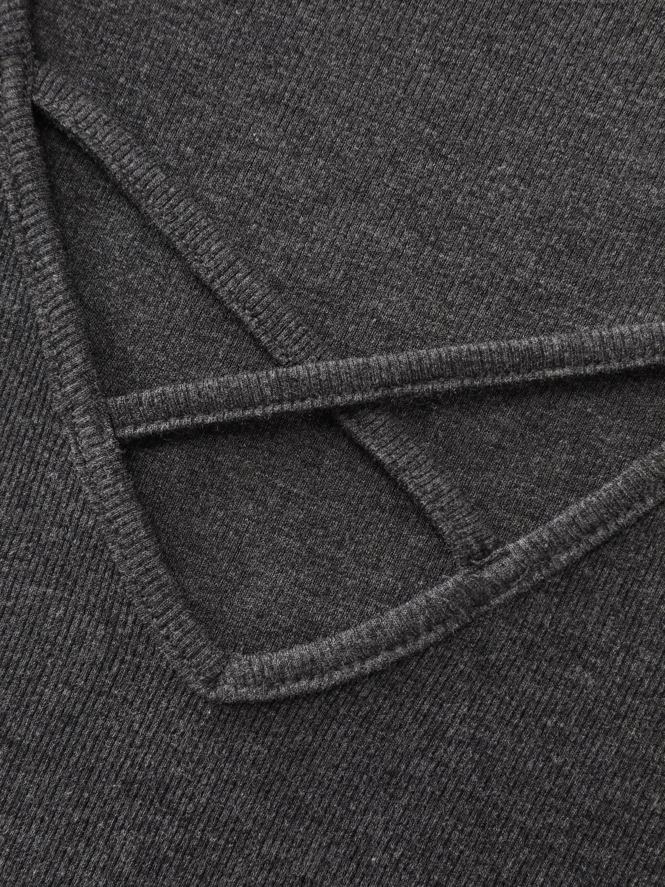 Textured Stretchy Cut-Out Neckline T-Shirt