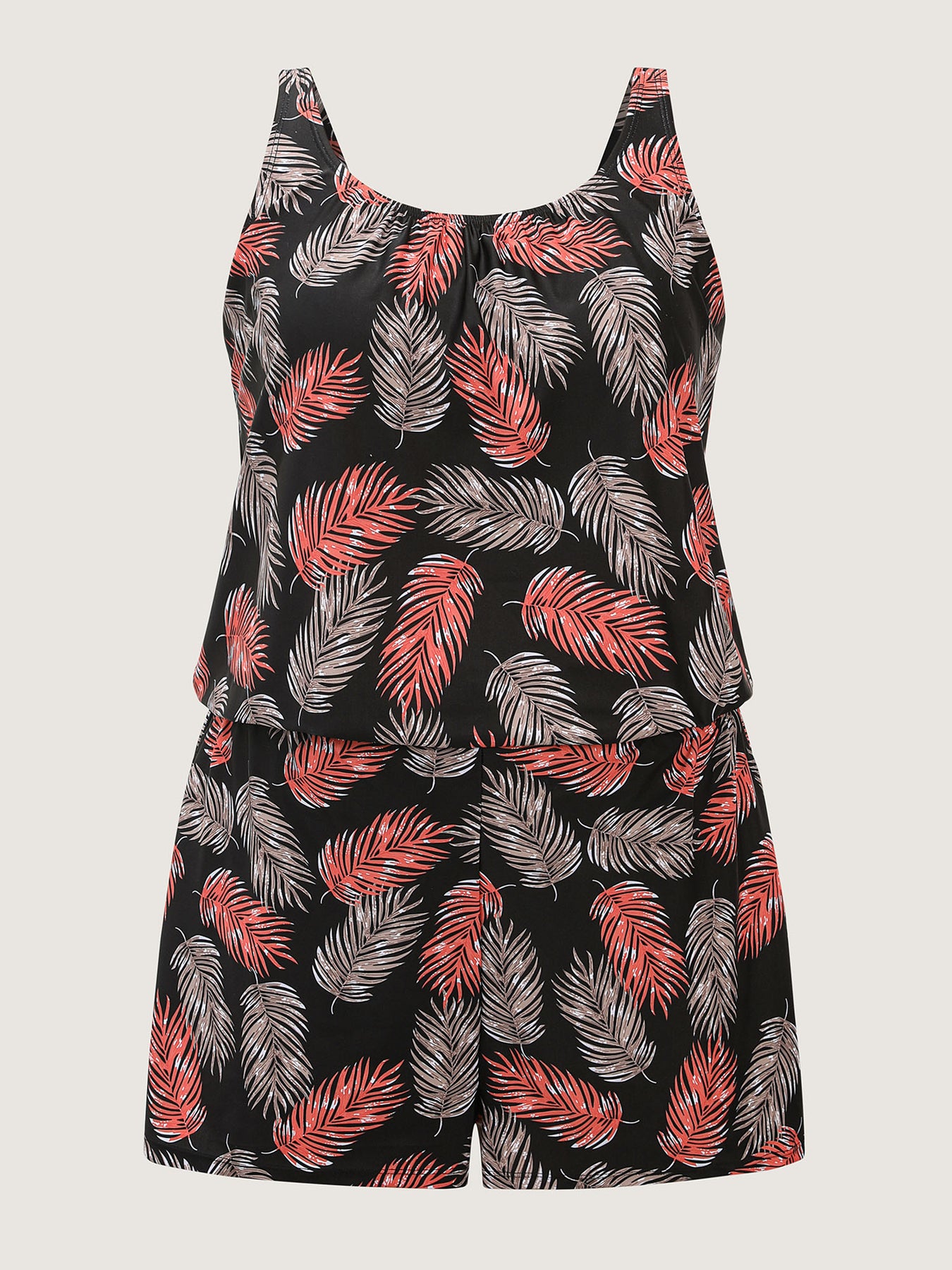 Tropical Flower Print Pockets One-Piece Swimsuit