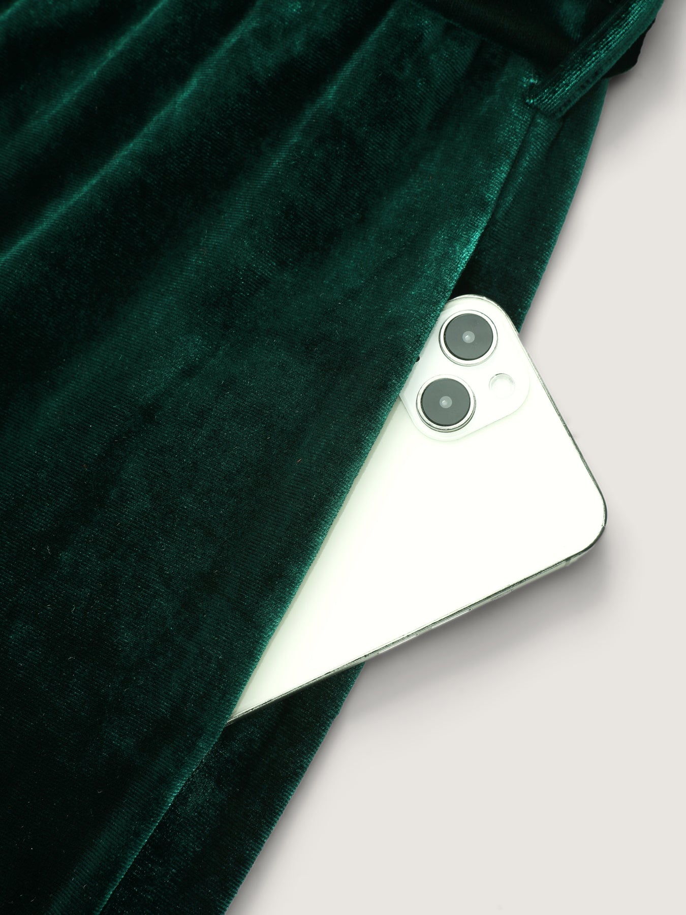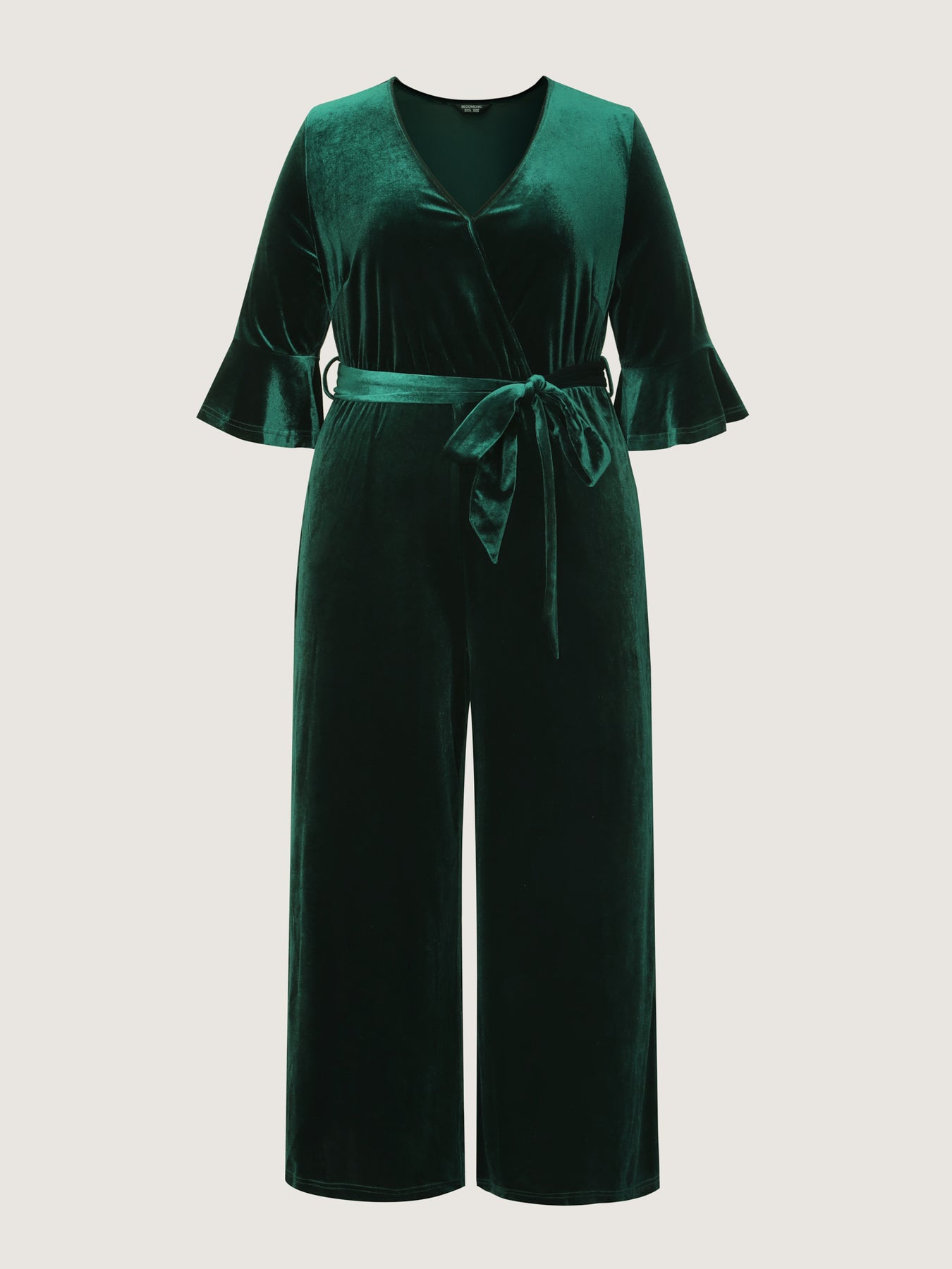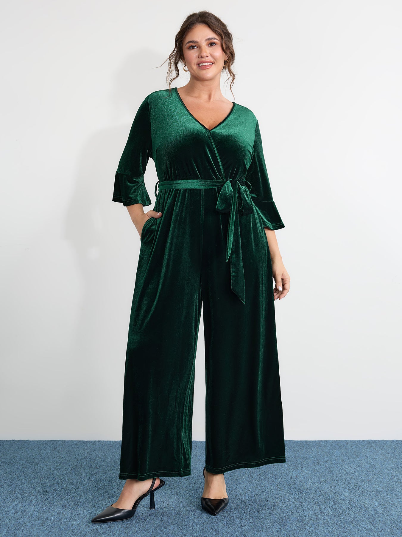 Velvet Belted Wide-Leg Pockets Jumpsuit